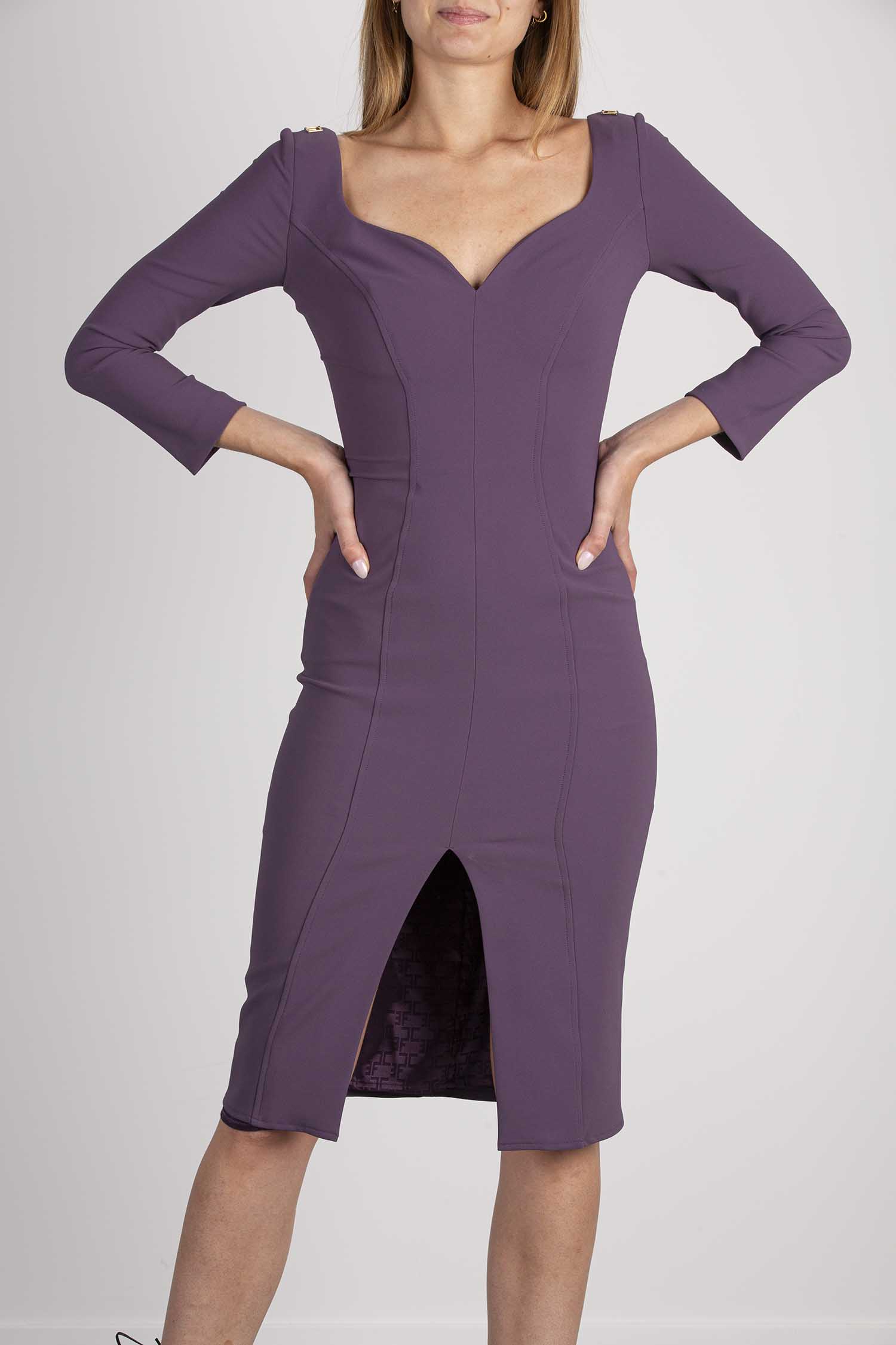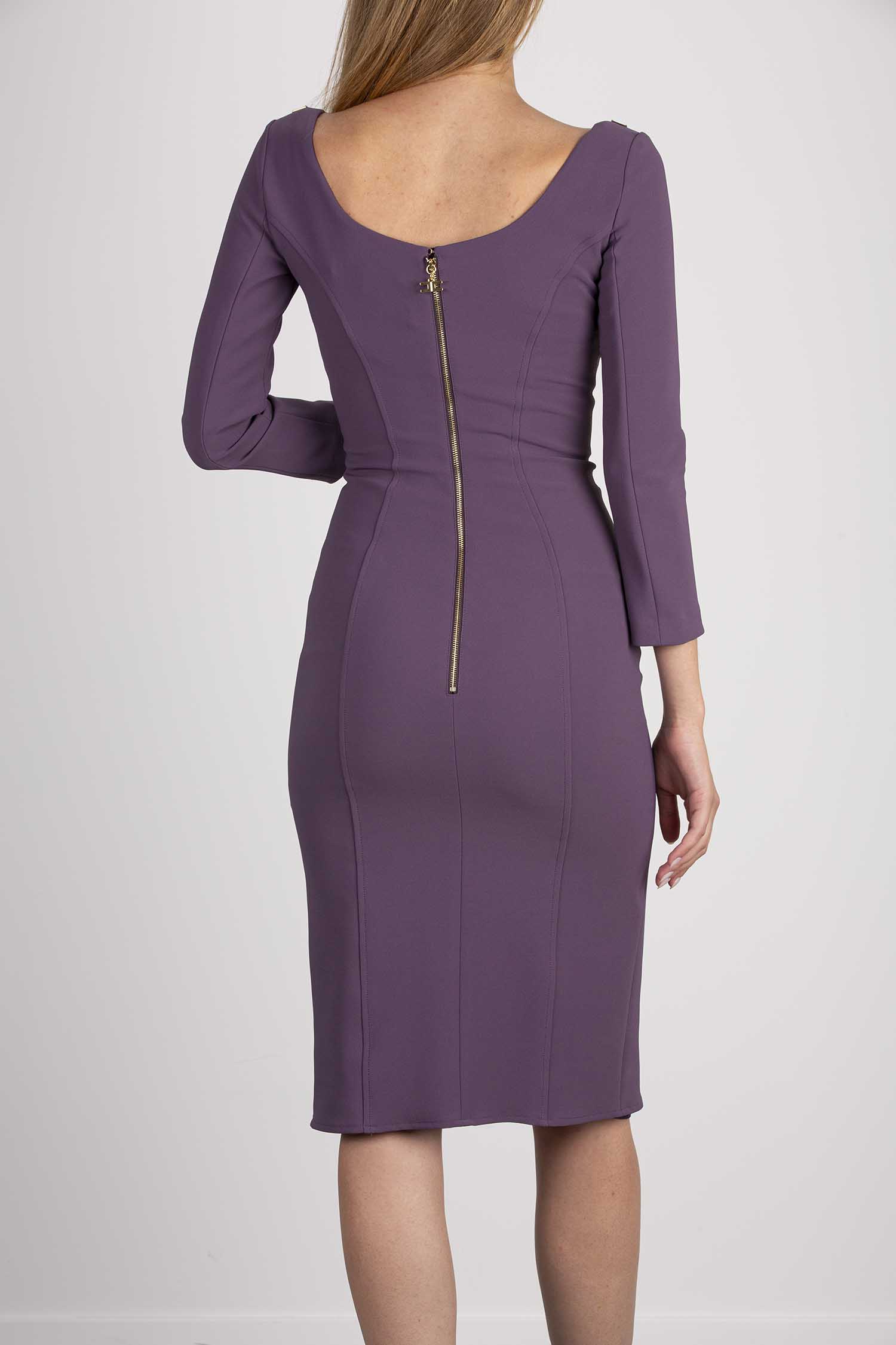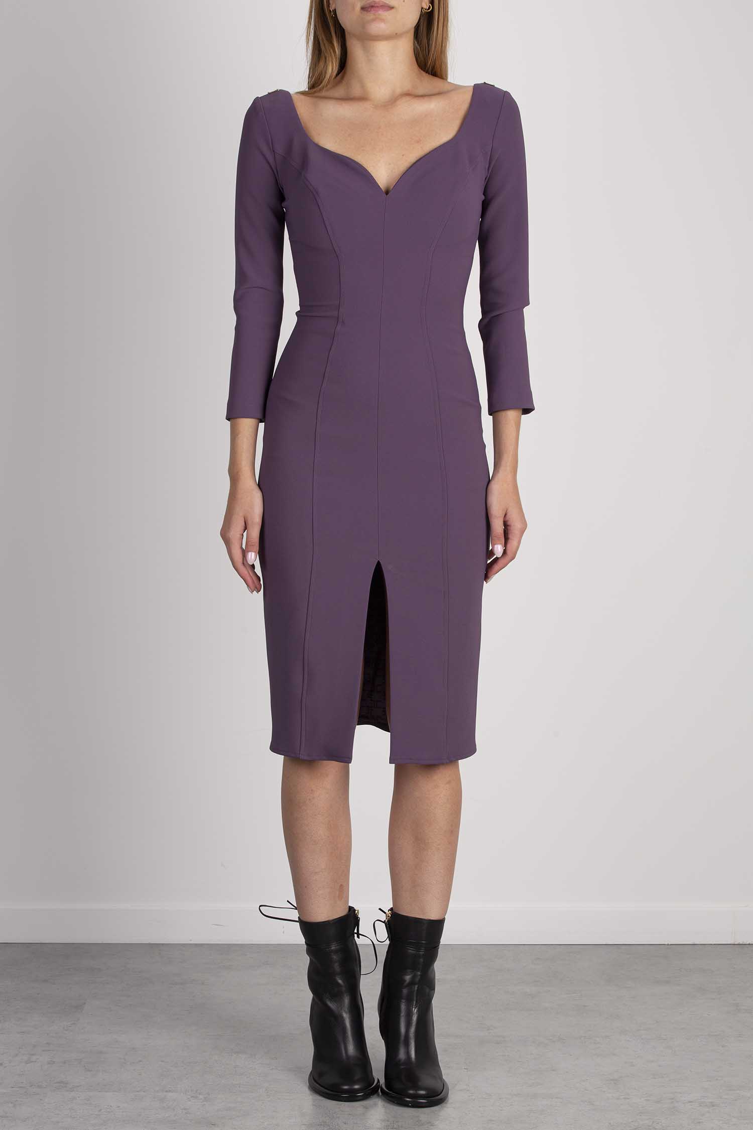 Tubino longuette in doppio crêpe stretch con ampia scolloatura sagomata e maniche a 3/4.