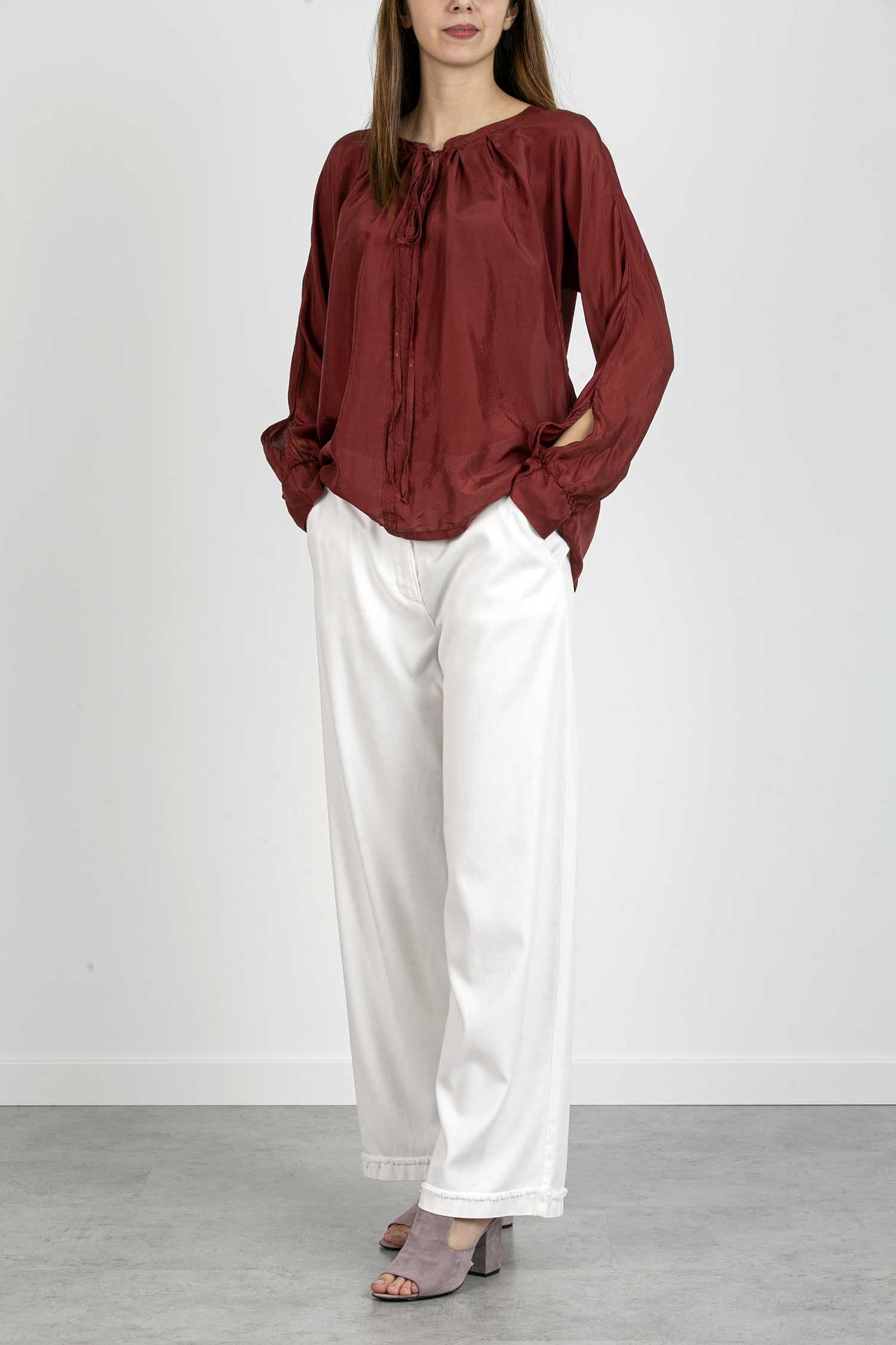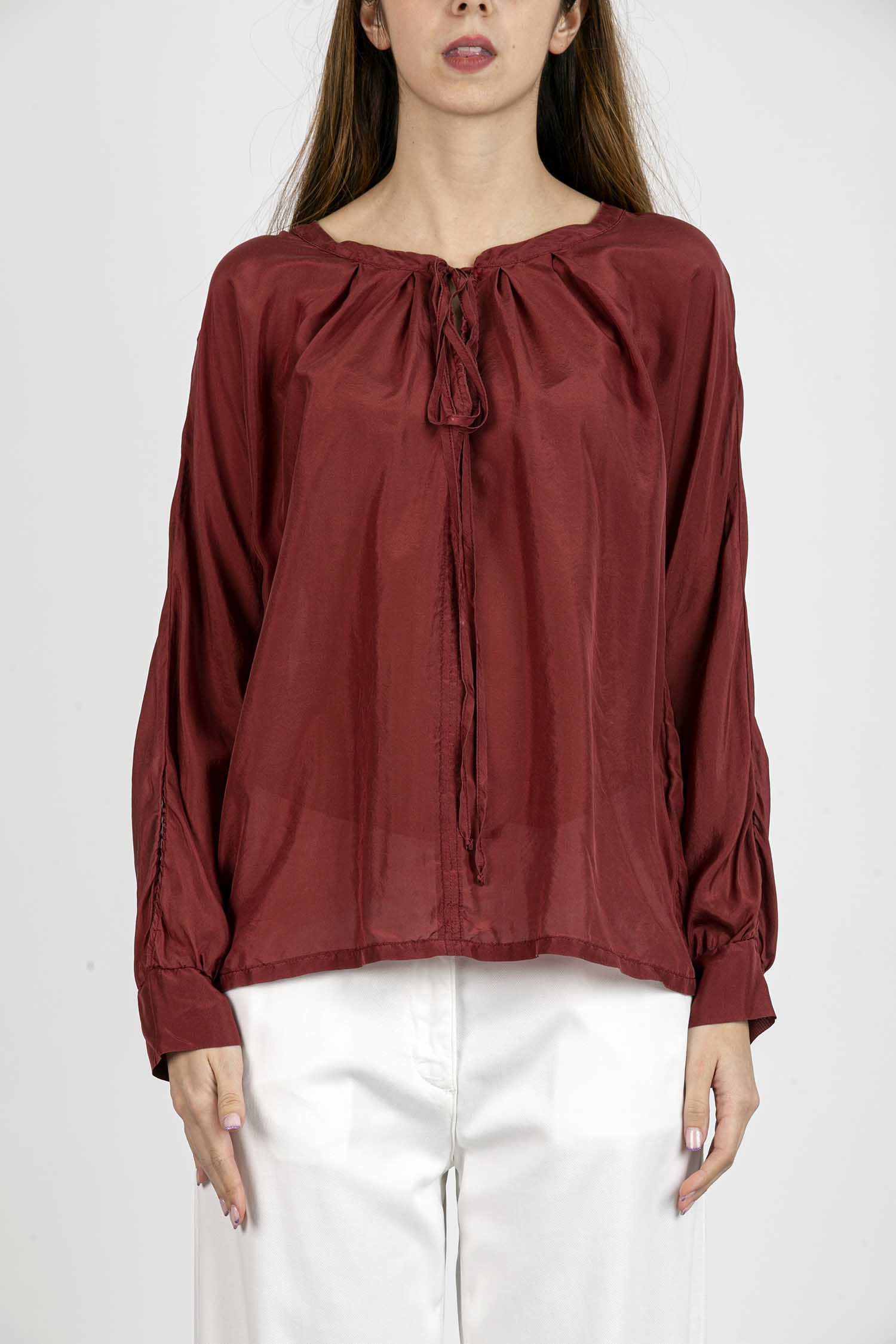 Blusa di seta con fiocco,