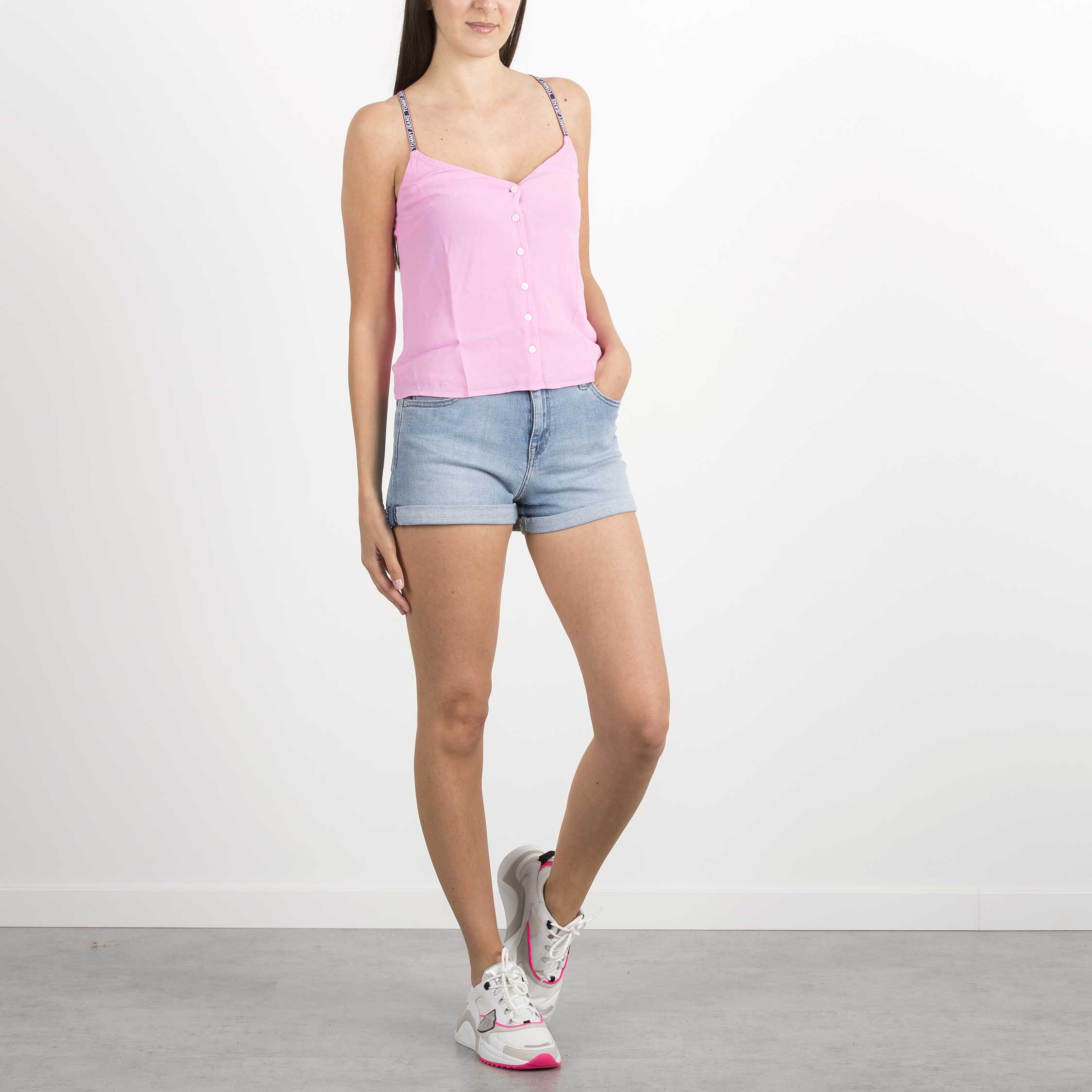 Nastro con logo Tommy Jeans ripetuto sulle spalline incrociate;