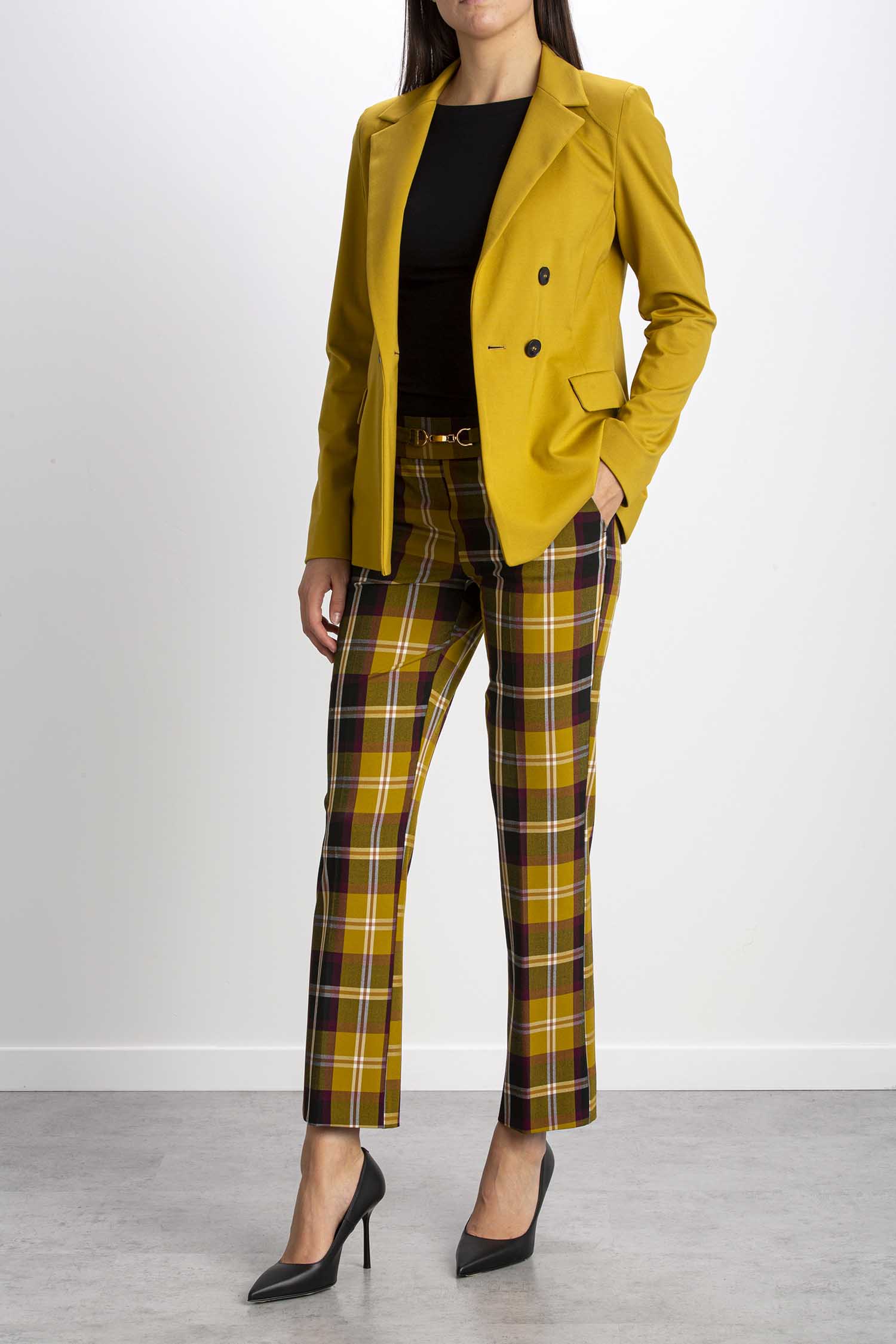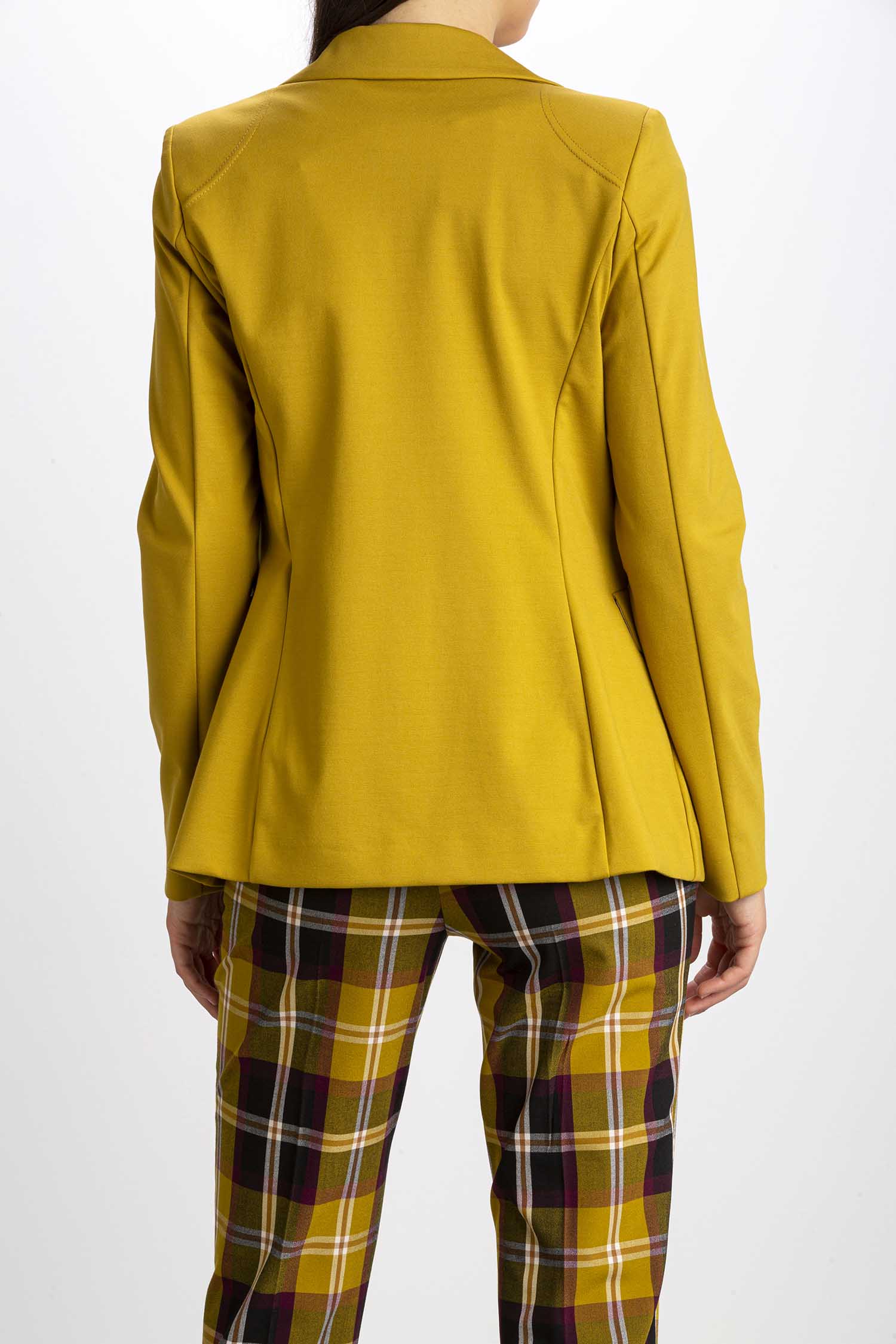 Blazer in jersey punto Milano, linea semiaderente. Collo a rever, maniche lunghe. Chiusura a doppiopetto, tasche con patta.