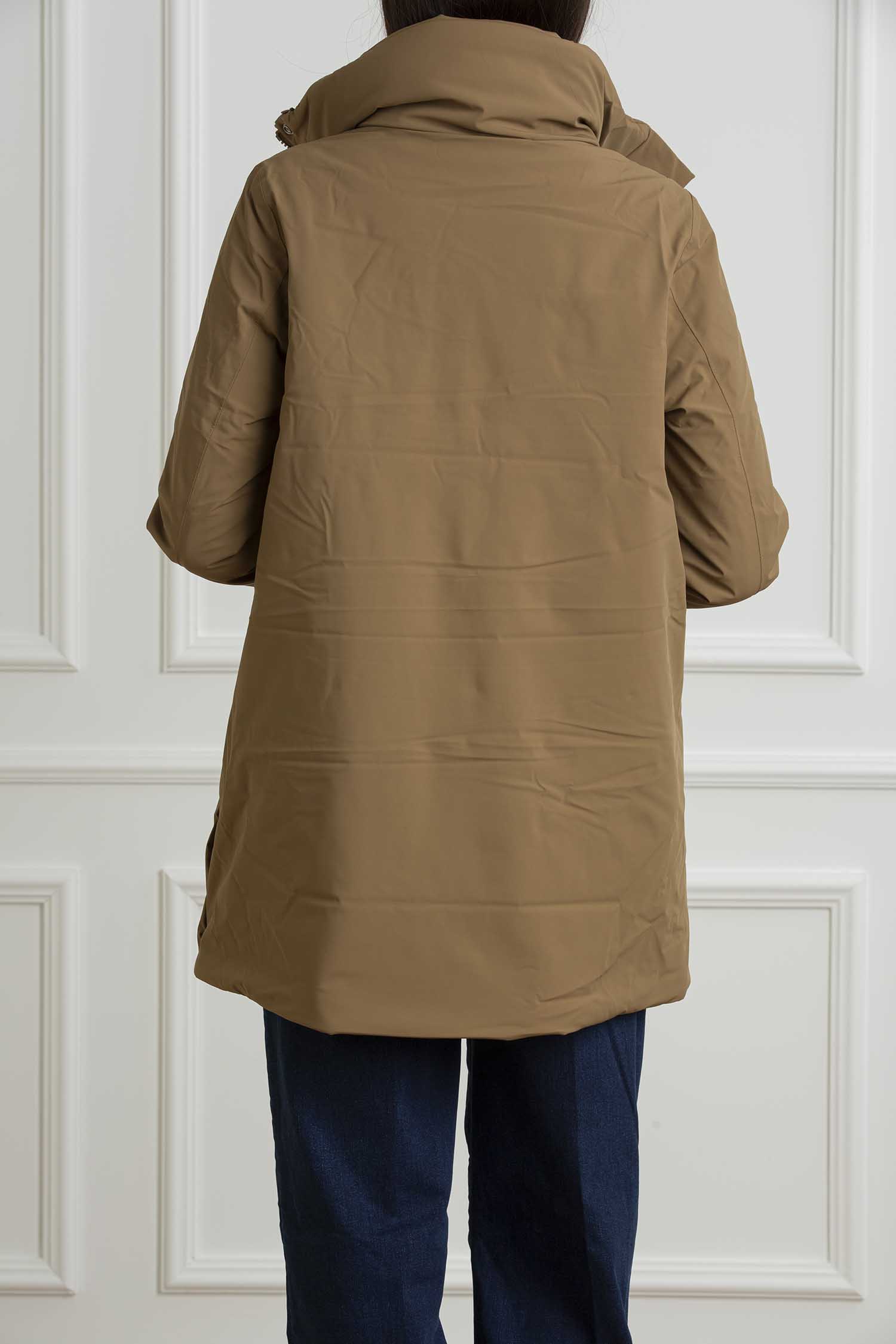 Marla è una giacca corta da donnacon lunghezza a tre quarti che interpreta in chiave elegante e femminile il classico capospalla funzionale e cittadino. Questa giacca presenta la possibilità di modulare le aperture sui fianchi con i pratici bottoni a pressione invisibili all’esterno, grazie ai quali è possibile rendere il capo da classico e semplice a femminile e accattivante. Il suo cappuccio integrato nel collo alto, facilmente estraibile in caso di pioggia improvvisa, conferisce al capo ulteriore praticità. Un grado di calore medio adatto ad autunno e inizio inverno è assicurato dall’imbottitura in fibra sintetica