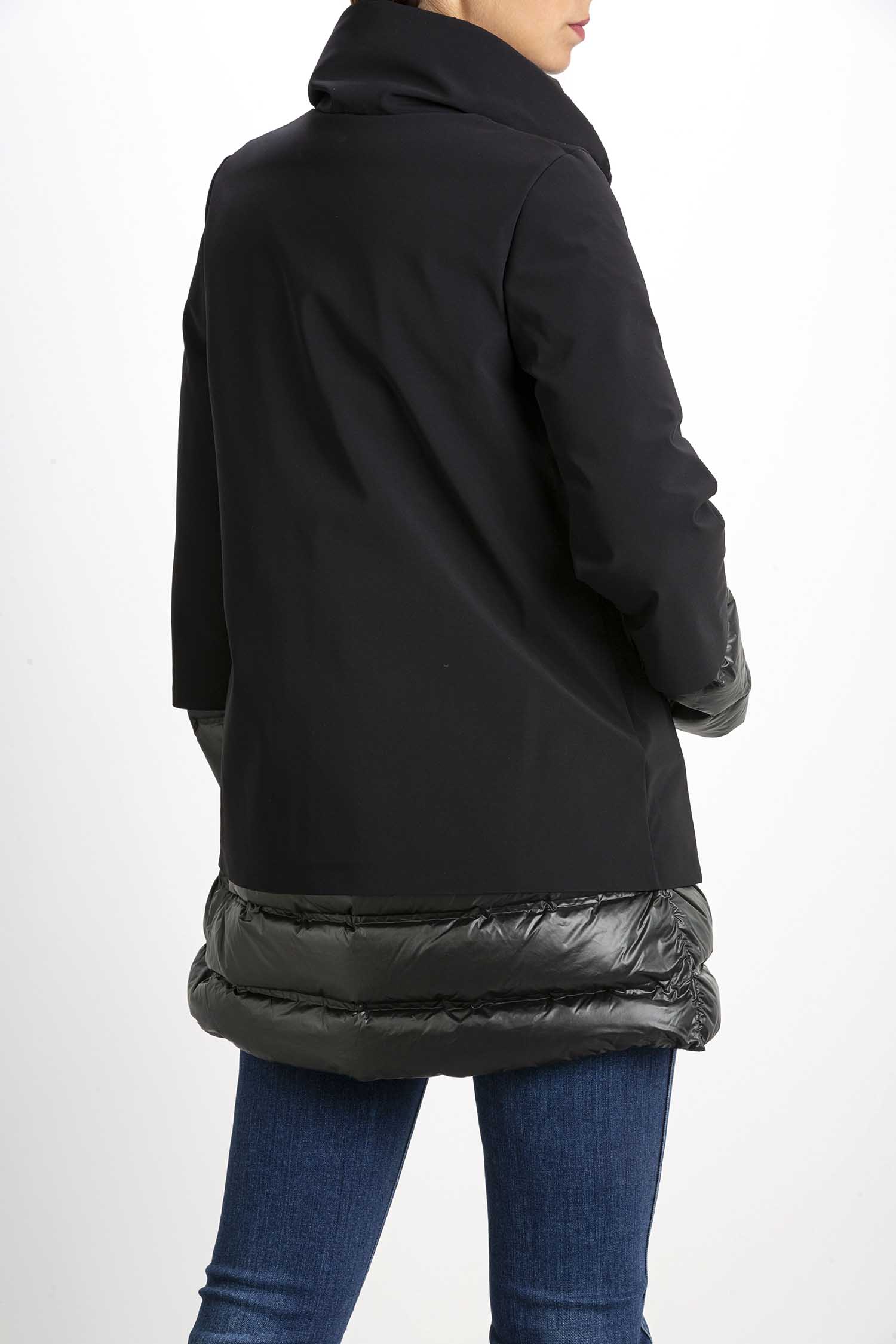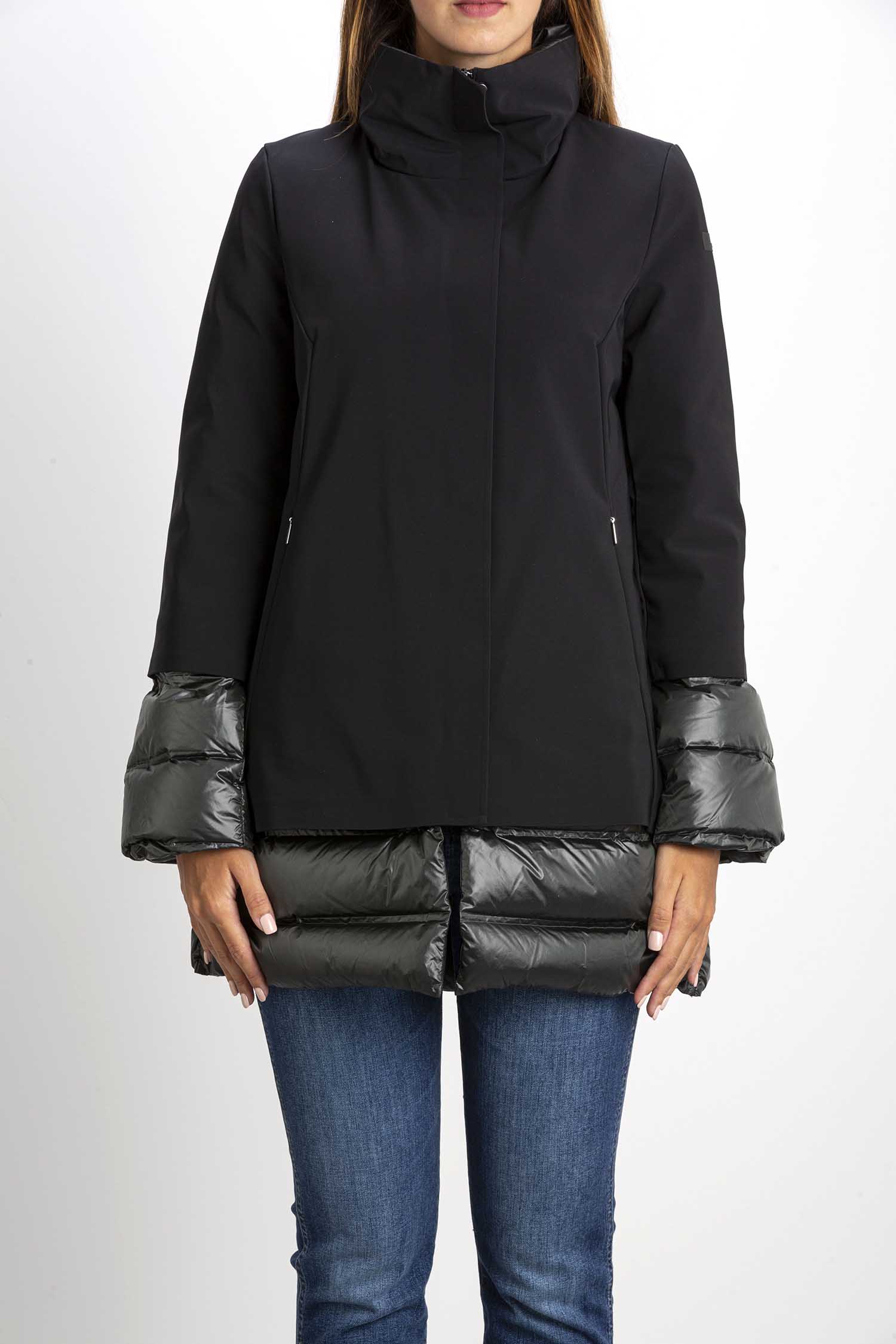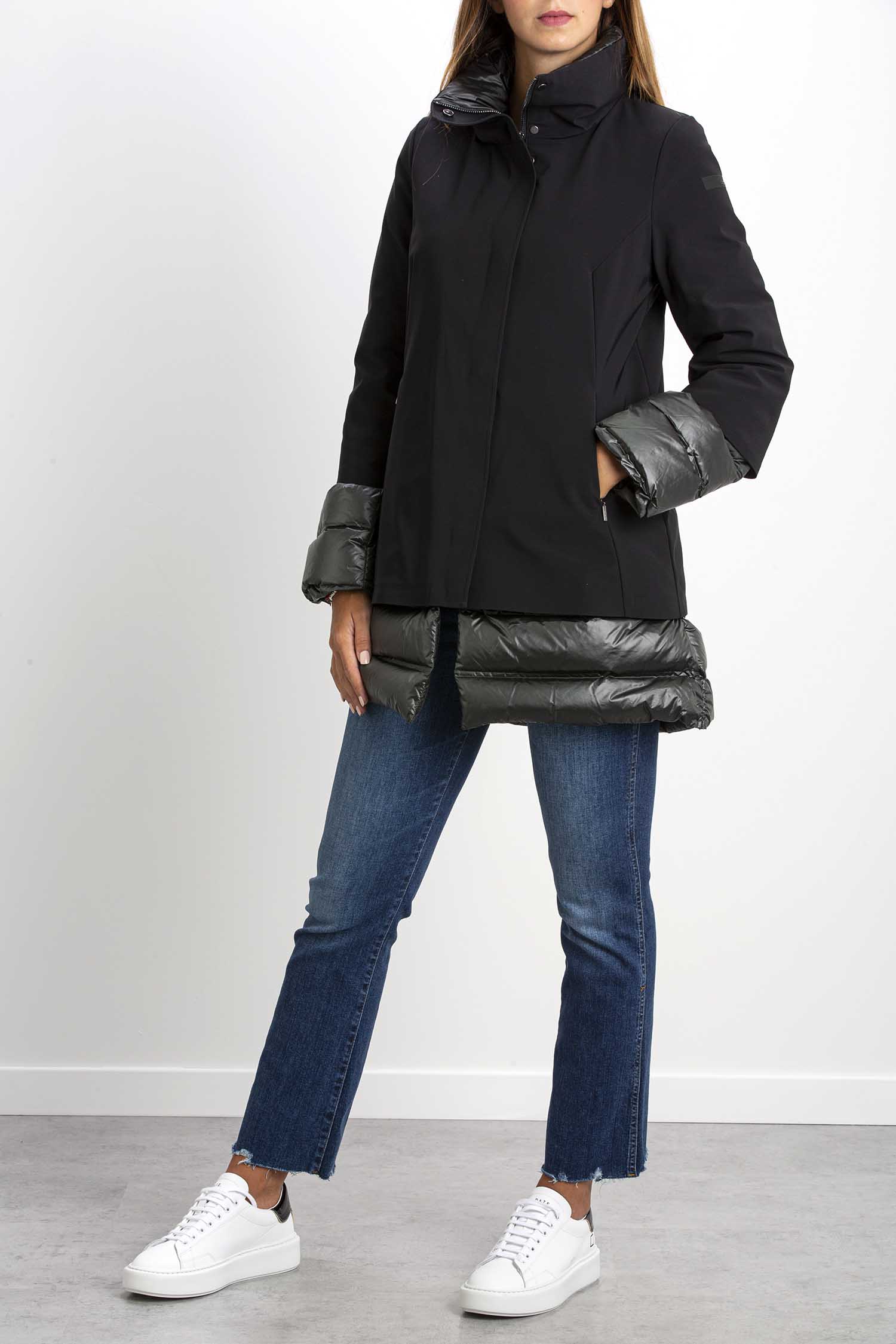 Questo capo è stato realizzato con un tessuto progettato utilizzando il metodo esclusivo RRD “Holystic Technology 3” che garantisce funzionalità, stile e unicità del prodotto grazie a tre componenti che, uniti insieme, ne costituiscono la struttura: lo shell in poliammide/Lycra® super matt (165g/m2 80% polyamide e 20% elastane) viene unito a una membrana poliuretanica elastica, traspirante, anti acqua e anti vento capace di assicurare una resistenza di 5.000 mm di colonna d’acqua. Nella parte interna una Lycra® super matt 120g/m2 garantisce elasticità facilità di movimento. Il suo aspetto “pulito” e senza pieghe è accentuato da zips invisibili e nessuna cucitura esterna. L’imbottitura “floating shield” in piuma d’anatra 90/10, inserita all’interno di un tessuto in nylon stretch tubolare e senza cuciture, non consente alle piume di fuoriuscire, garantendo al capo maggiore termicità, leggerezza e libertà di movimento.