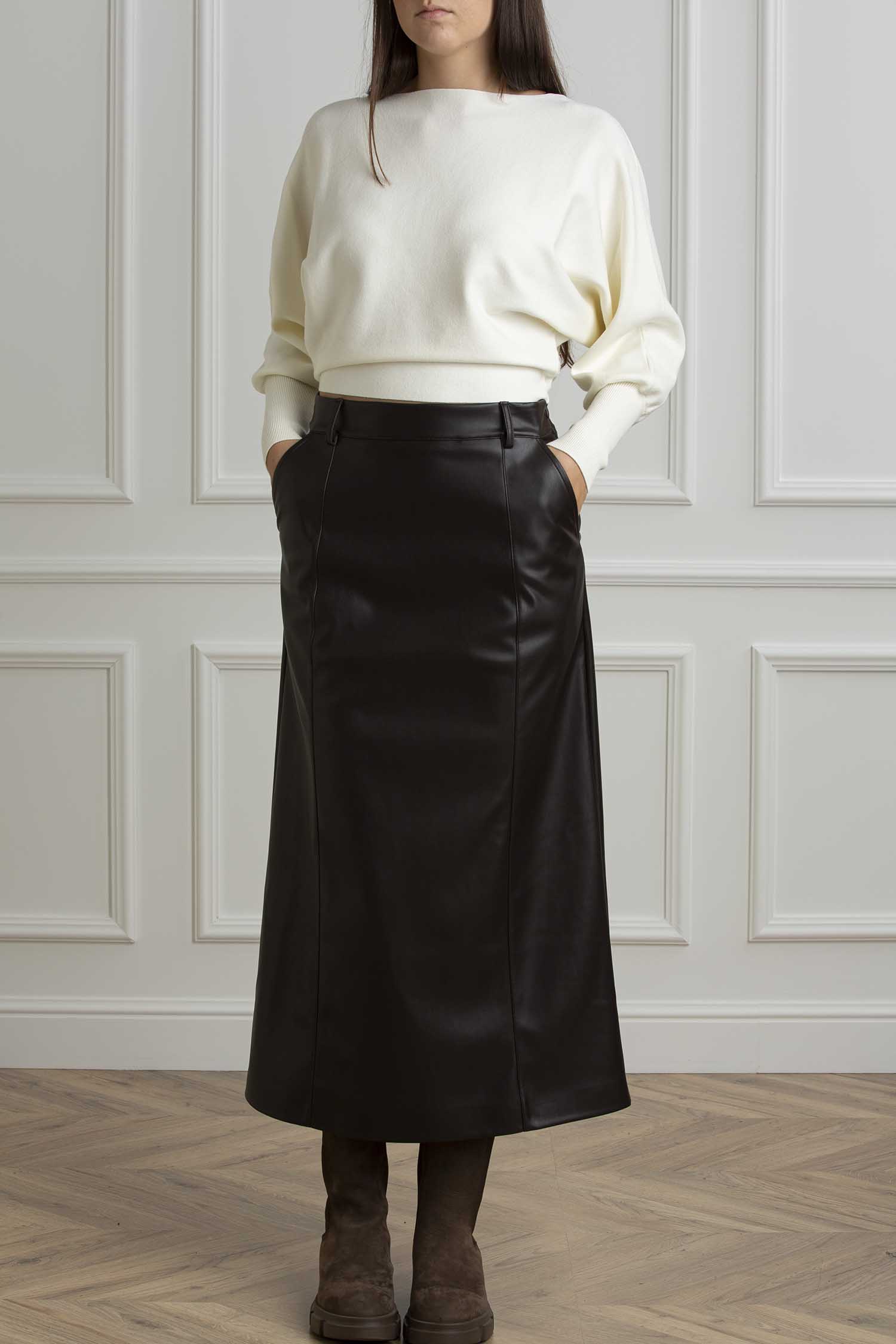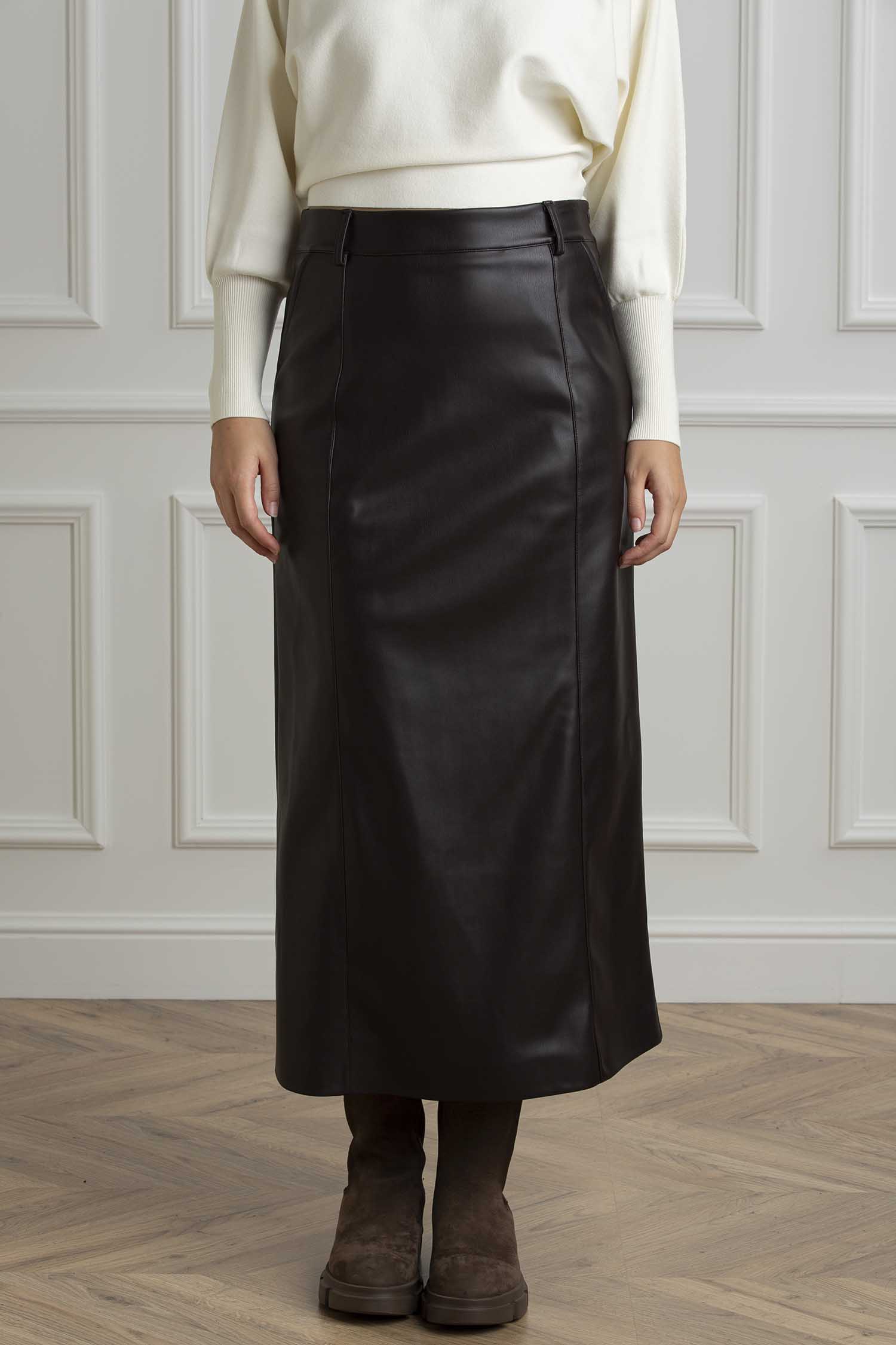 Gonna lunga. Vita media. Chiusura laterale con zip a scomparsa. Tasche oblique. Tagli centrali davanti e dietro. Regular fit.