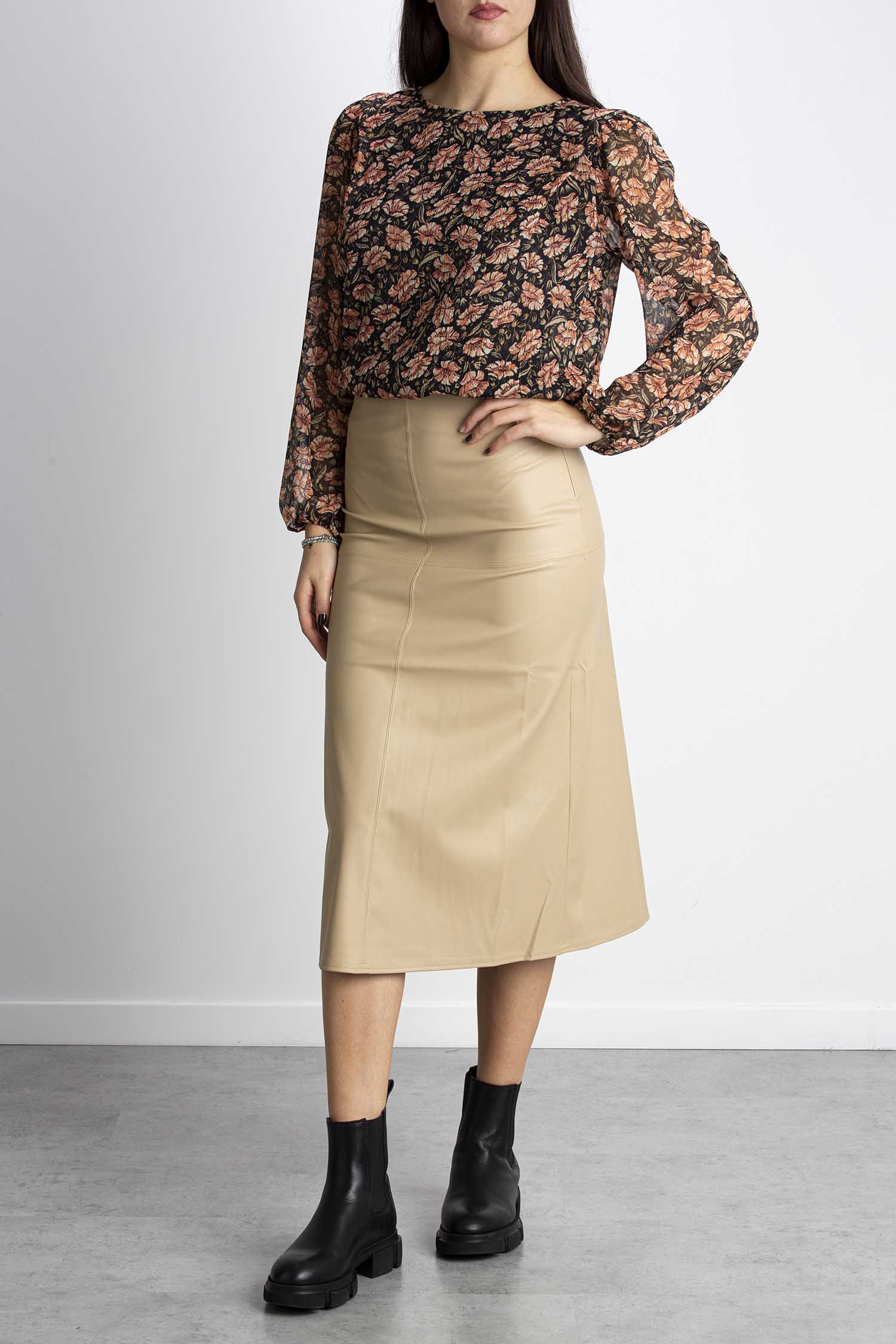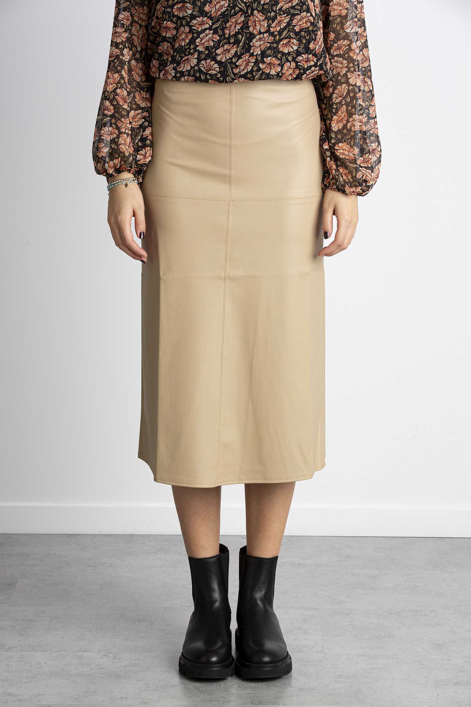 Gonna in jersey spalmato dalla linea ad A con chiusura con zip sul fianco.