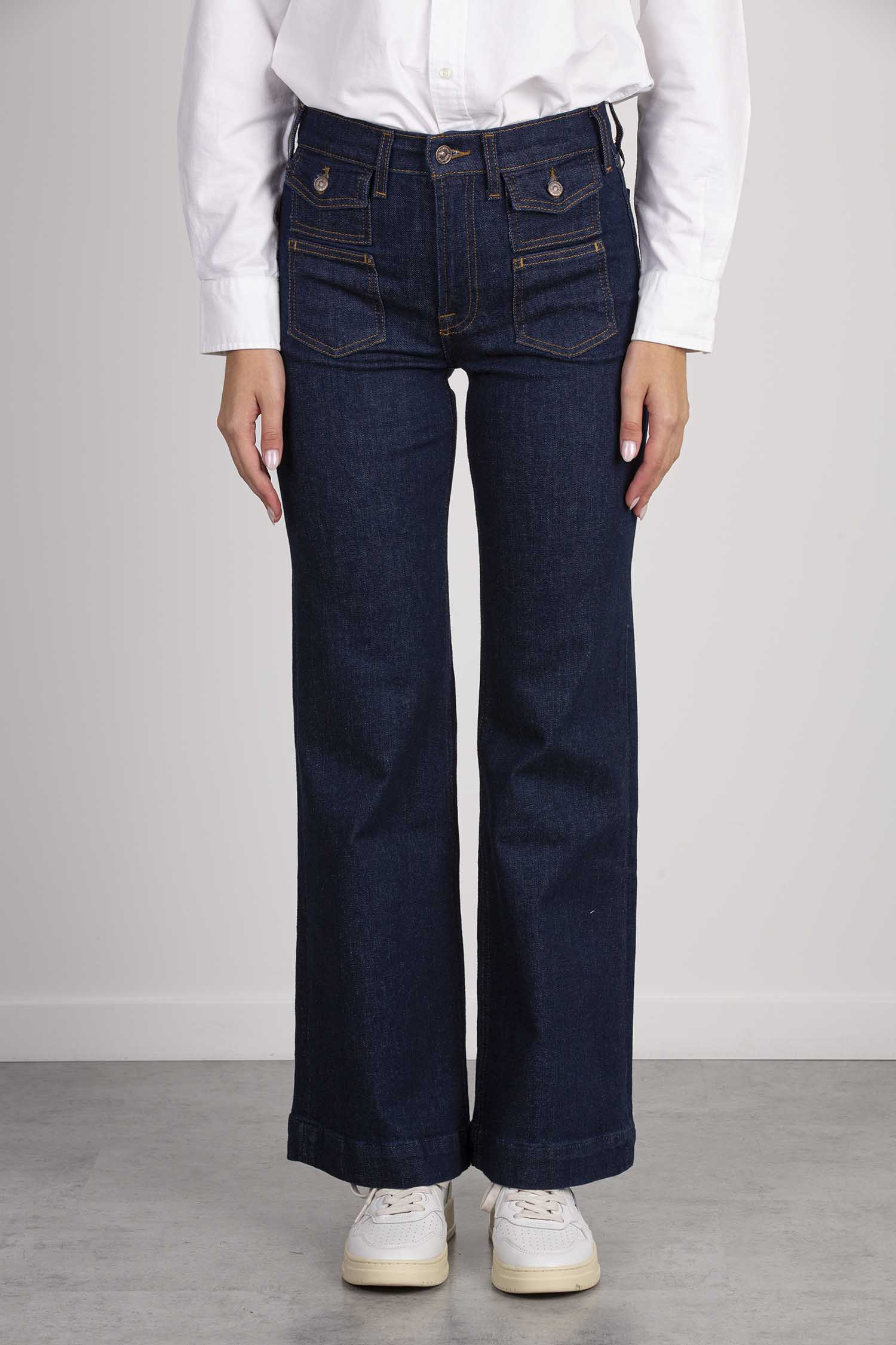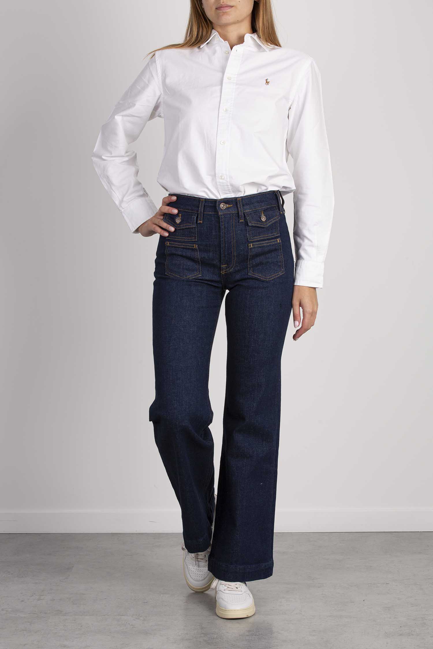 Questo grazie al morbidissimo denim con cui sono realizzati. Caratterizzato da una vita alta e una svasatura ampia.