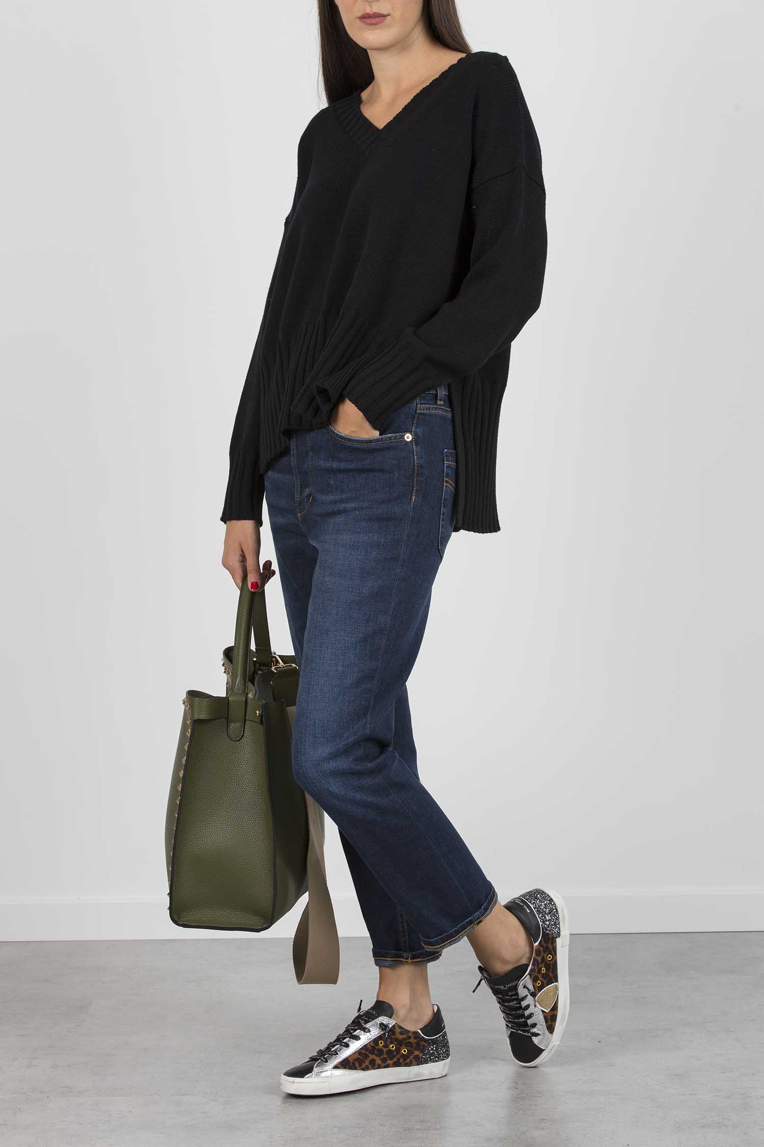 Maglione over con scollo a V davanti e dietro e spacchi laterali.