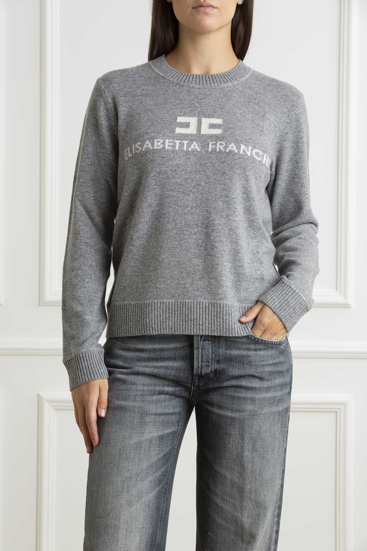 Pullover in misto cashmere a girocollo. È caratterizzato da logo a intarsio in contrasto colore.