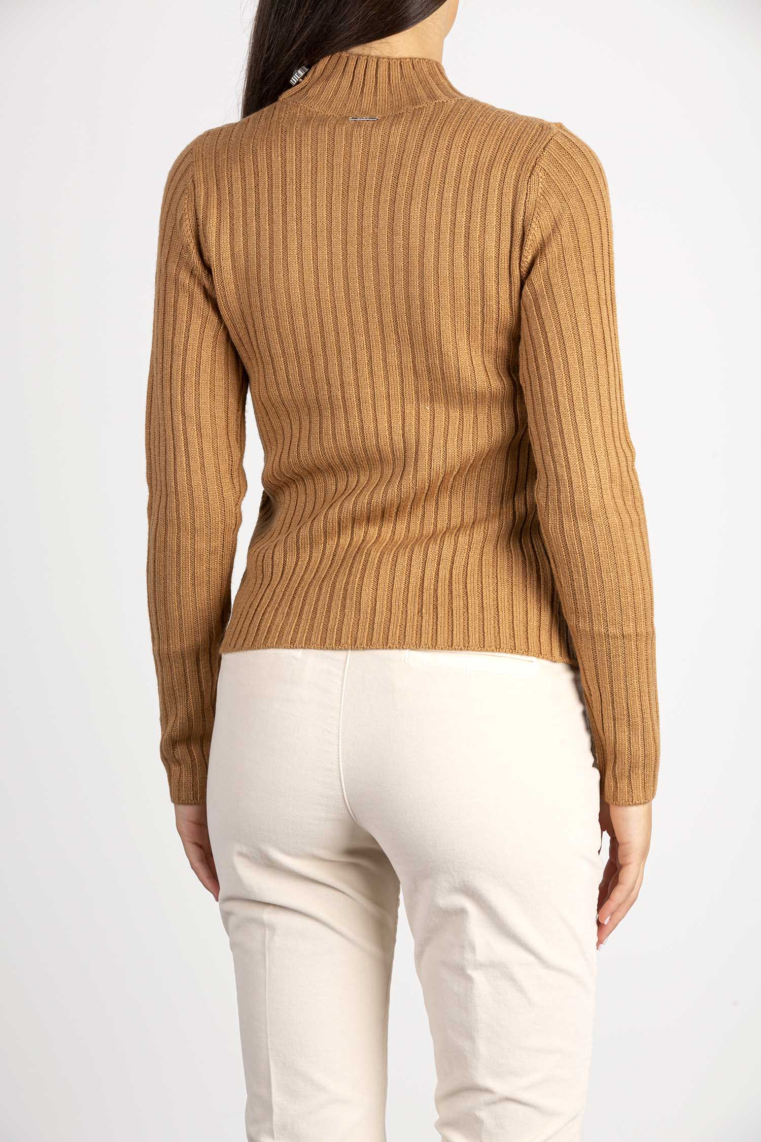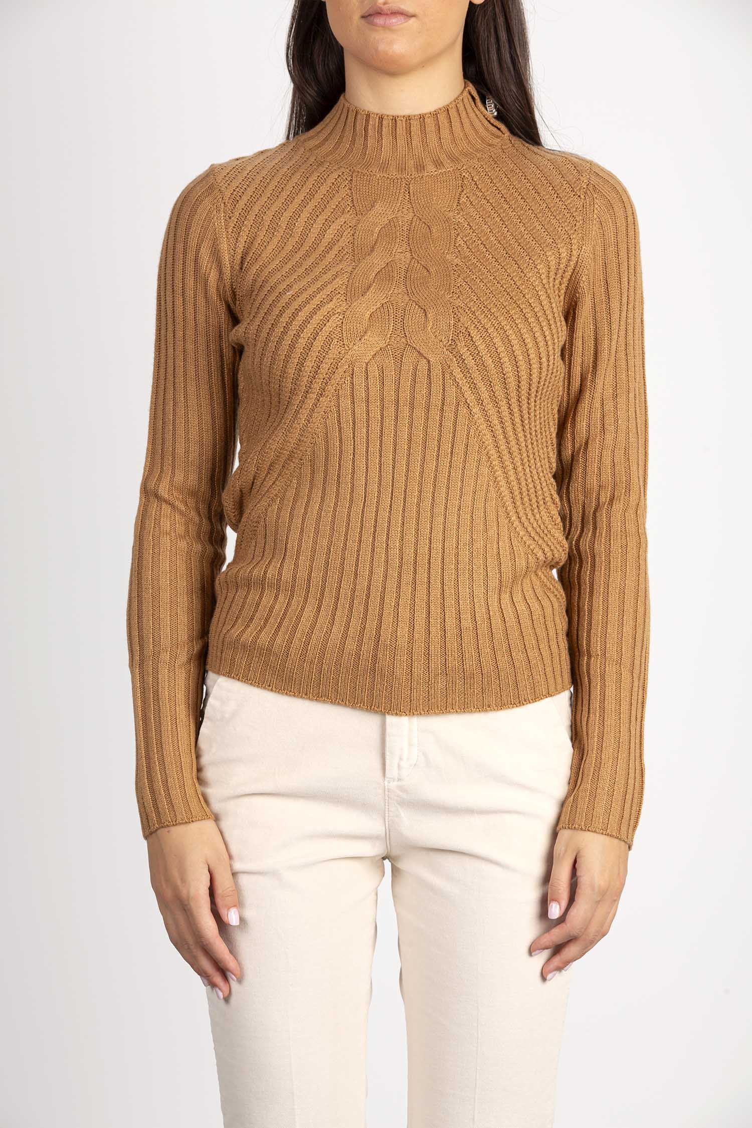 Maglia in misto lana con lavorazione a coste e a trecce.