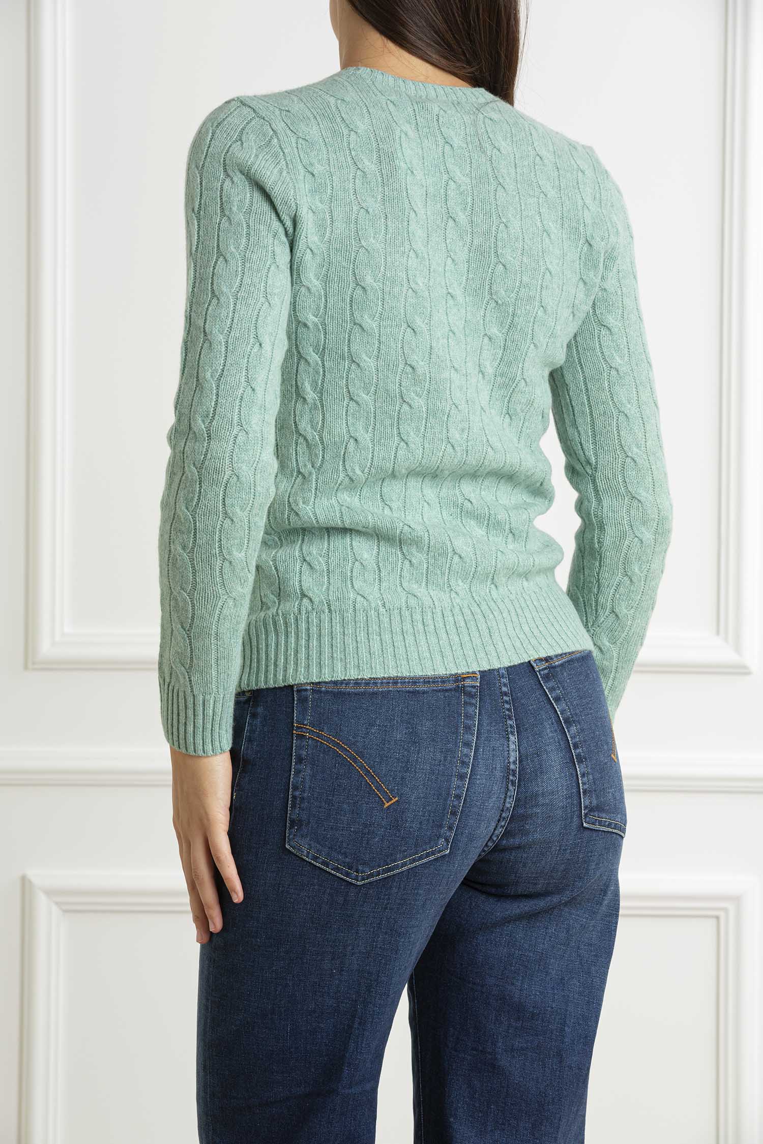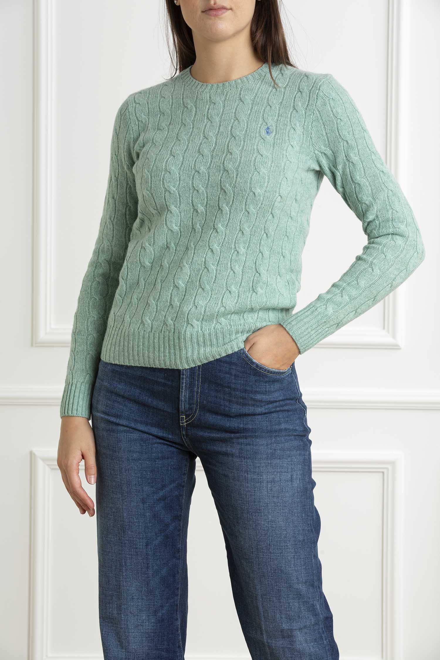 Girocollo. Maniche lunghe con polsini a coste. Orlo con lavorazione a coste e spacchi.