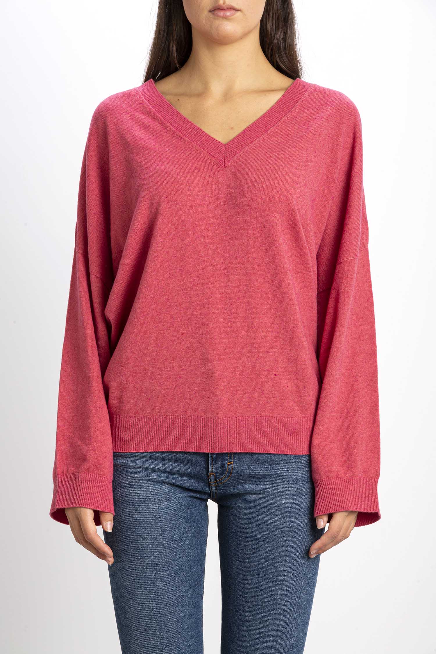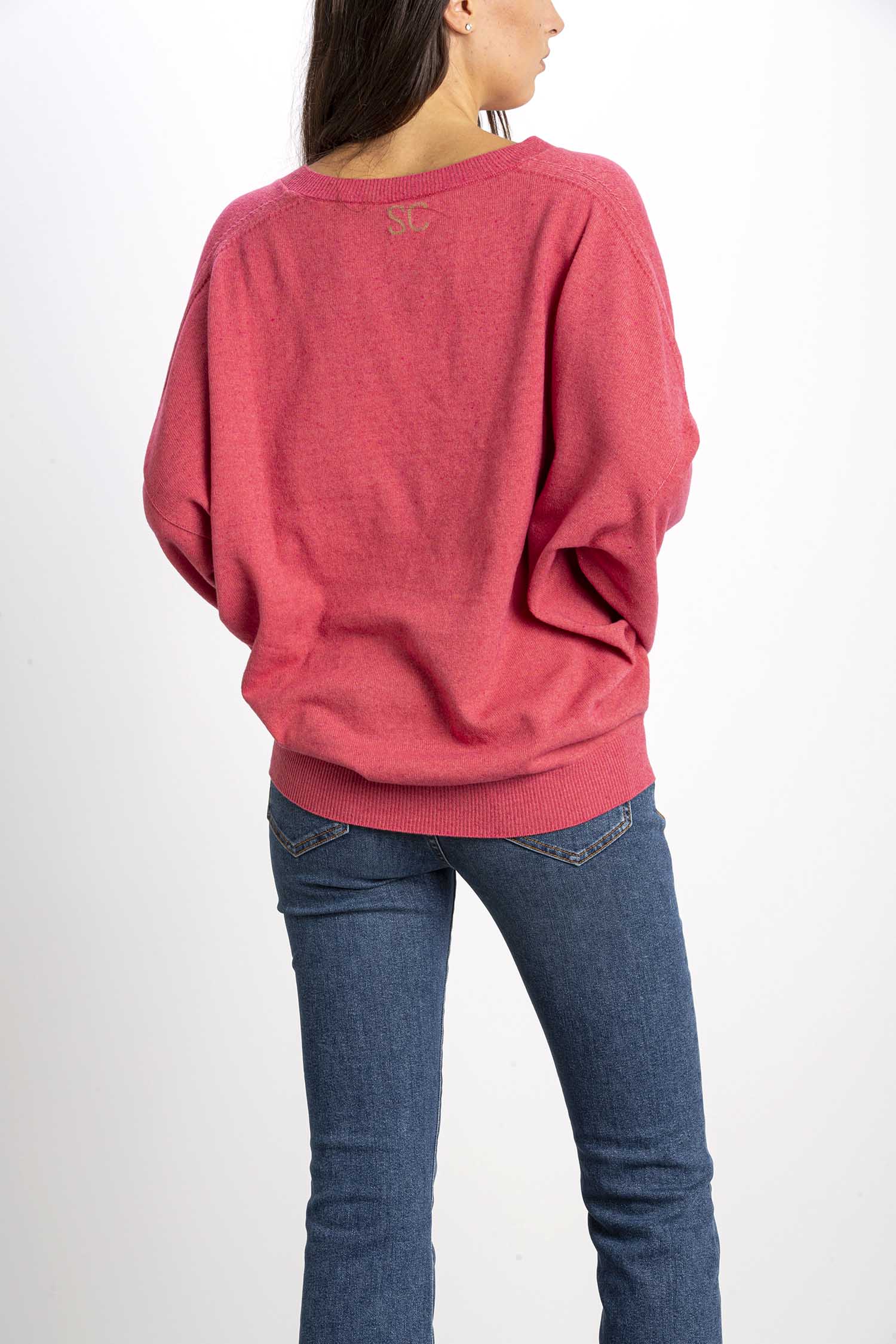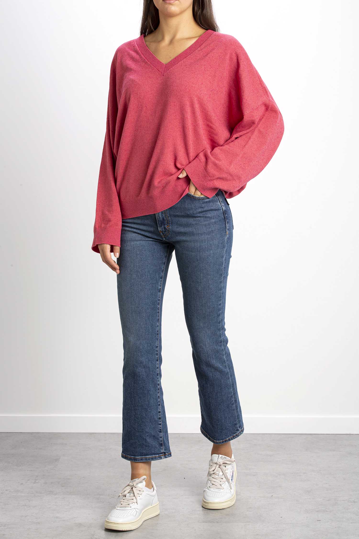 maglia misto cashmere con scollo a V, maniche lunghe a spalla scesa, collo, polsini fondo bordati a coste e lunghezza ai fianchi.