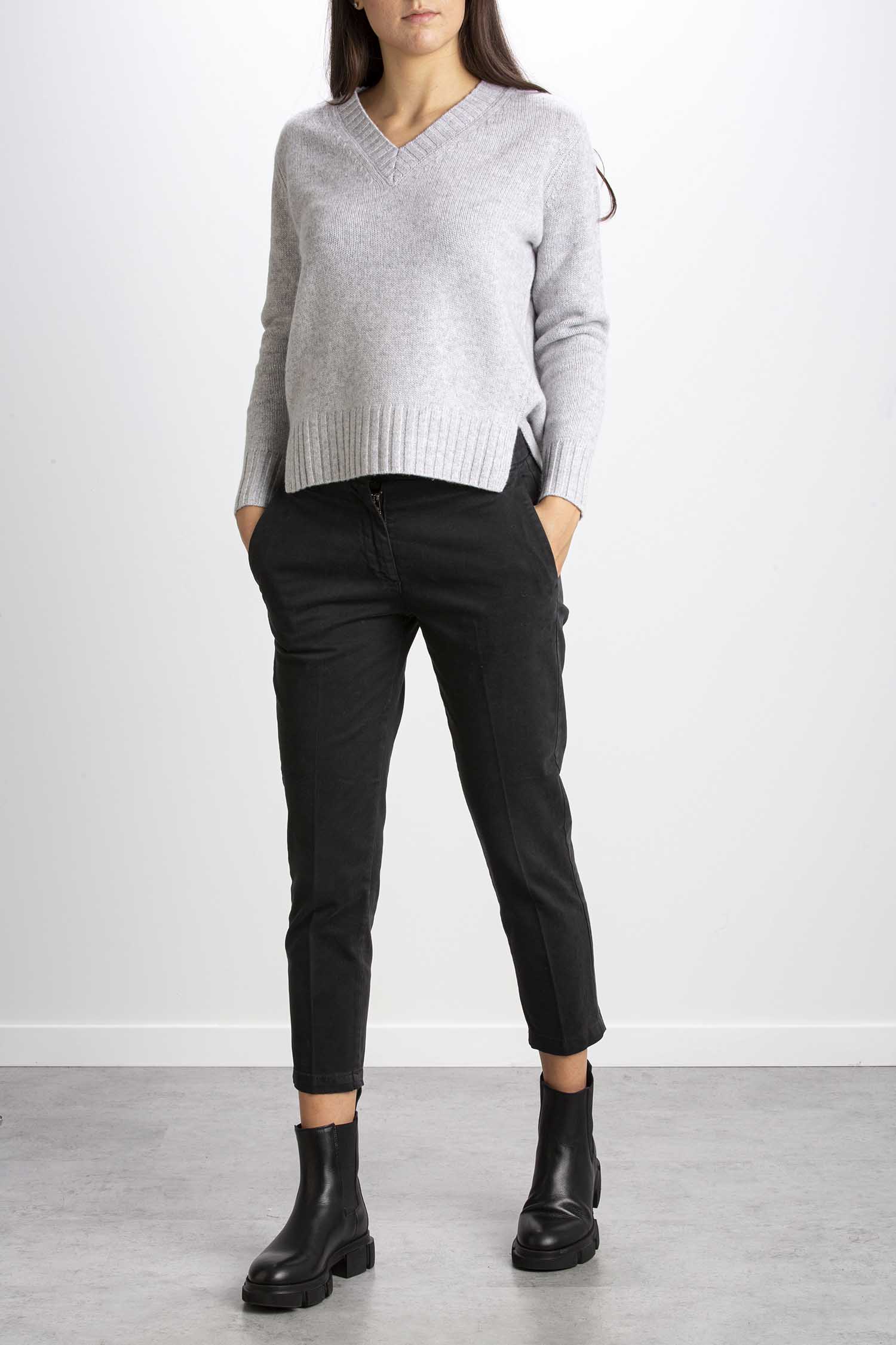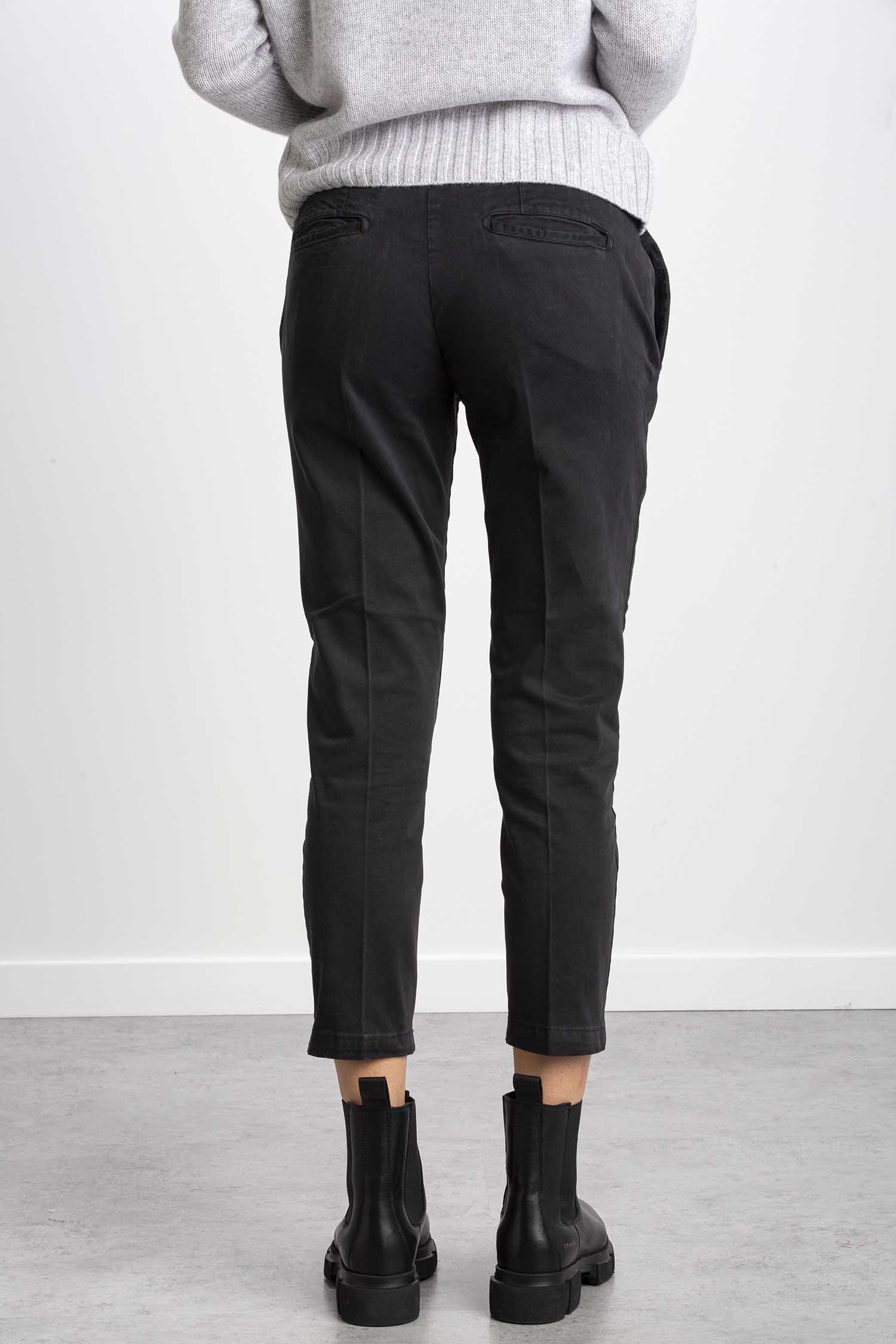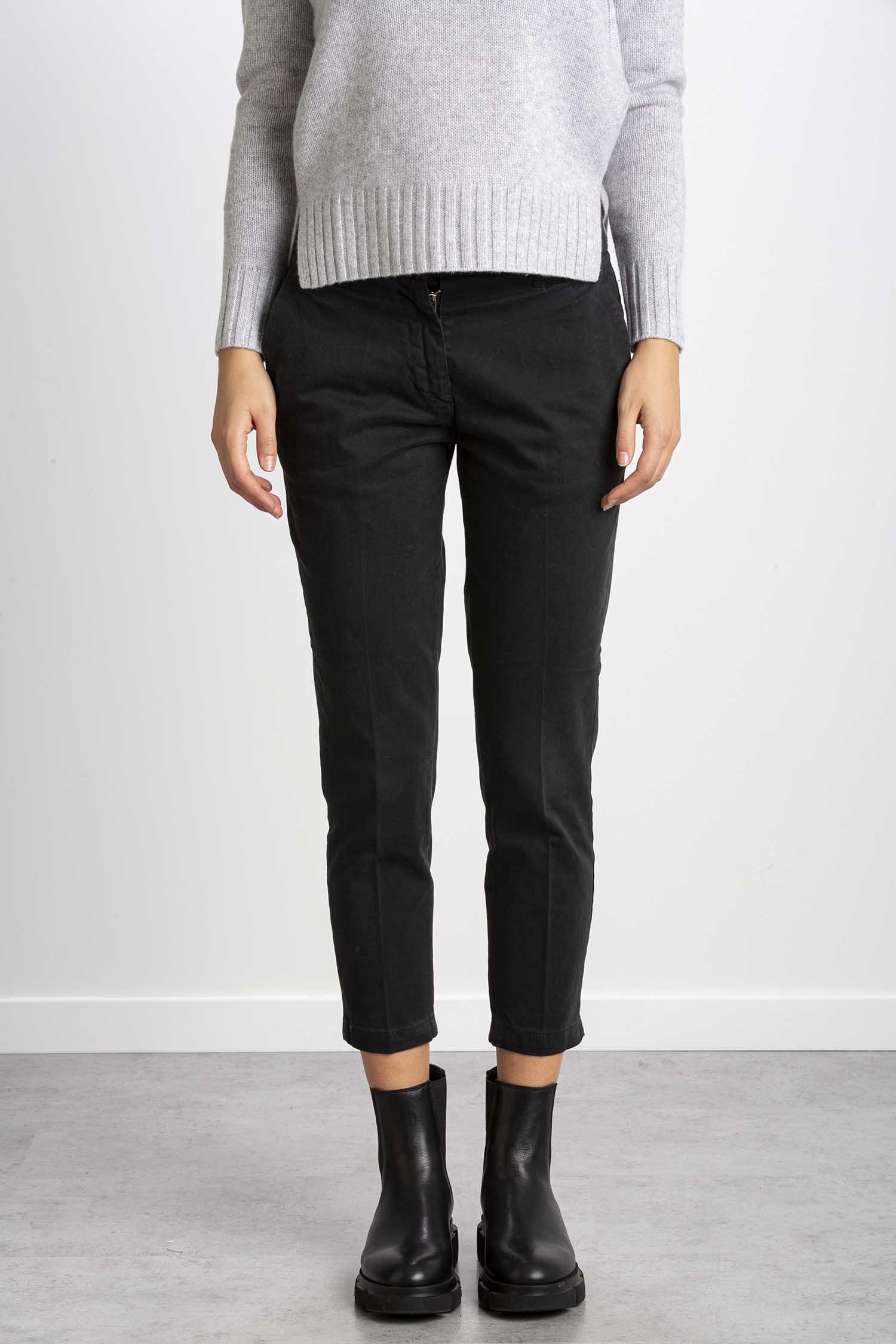 Pantalone sigaretta in cotone caldo tinta unita. Vita media con passanti. Chiusura con gancio interno in vita e zip. Tasche all’americana sul fronte e tasche a filetto sul retro. Regular fit.