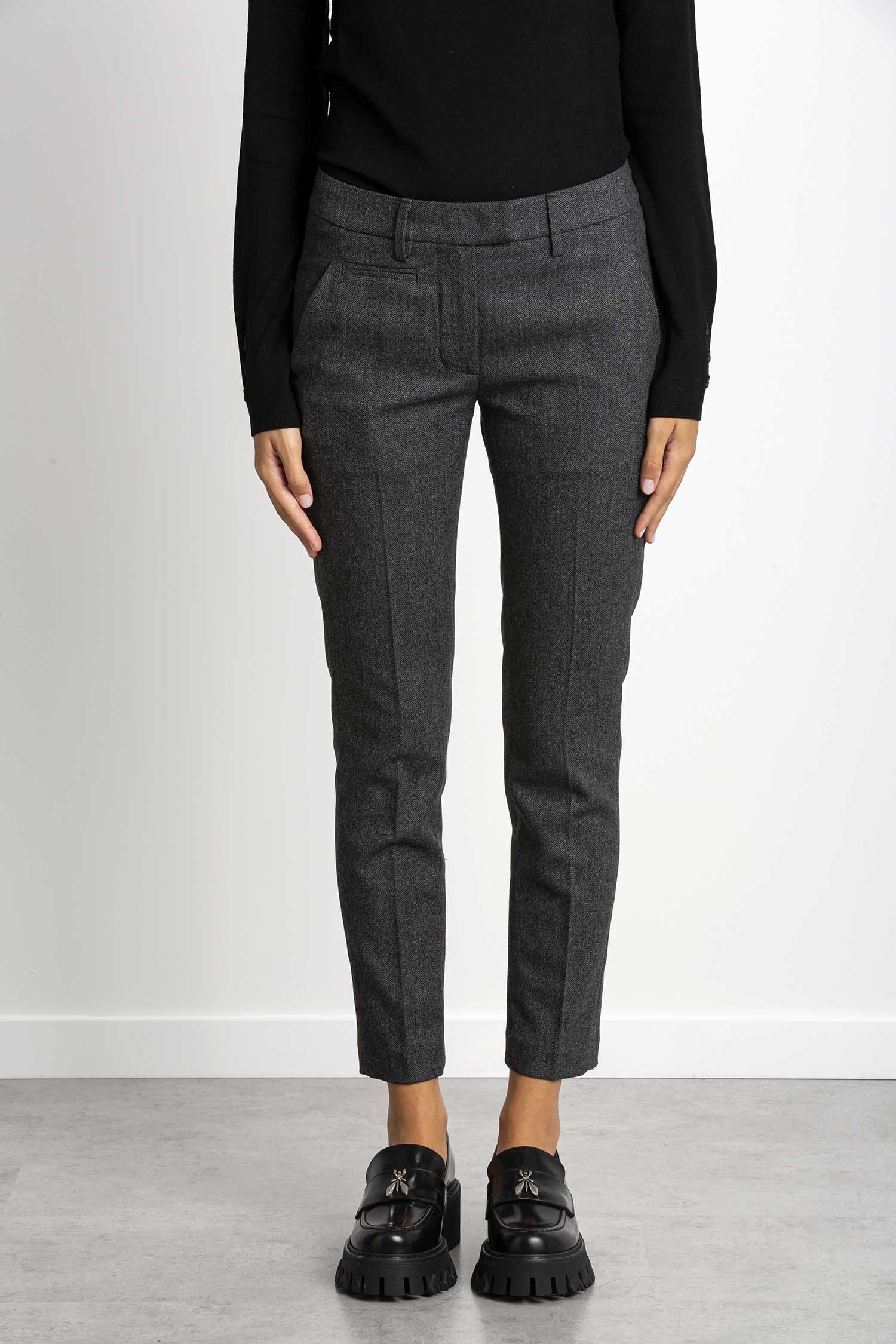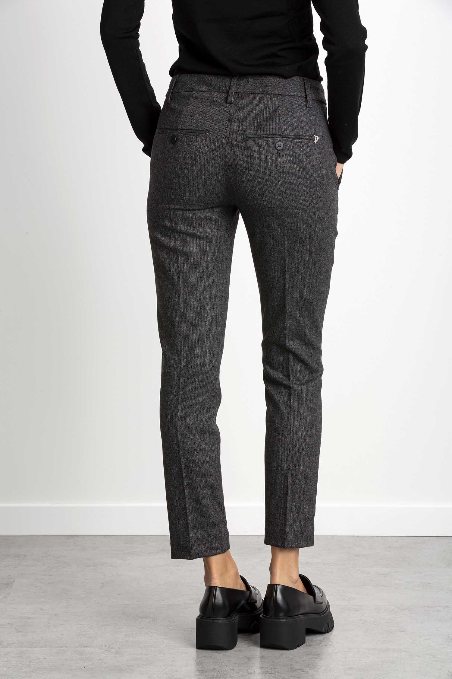Pantalone Perfect cropped slim chino, vita regolare, tasche a filetto posteriori. Punto milano. Logo Dondup. Made in Italy