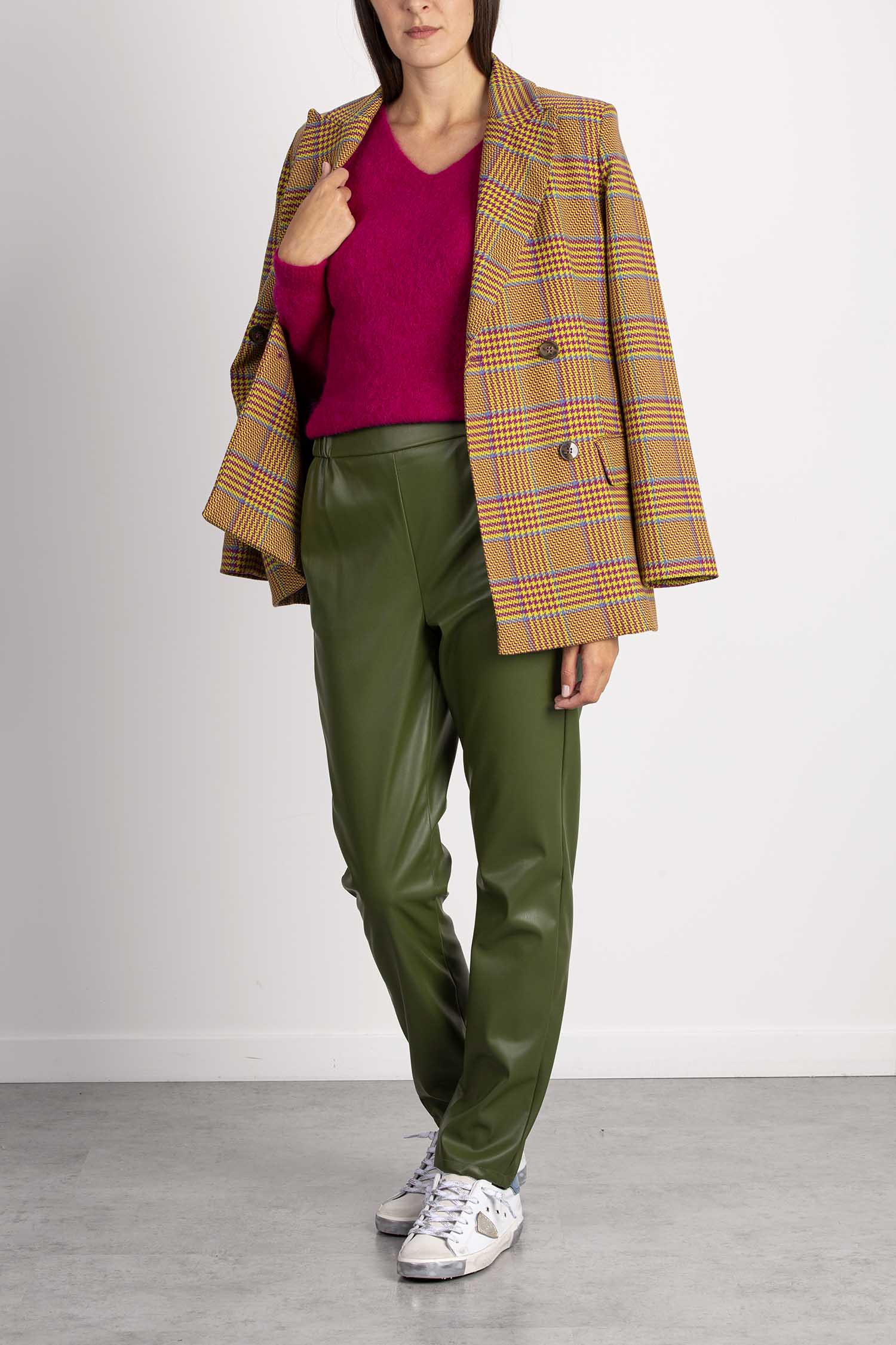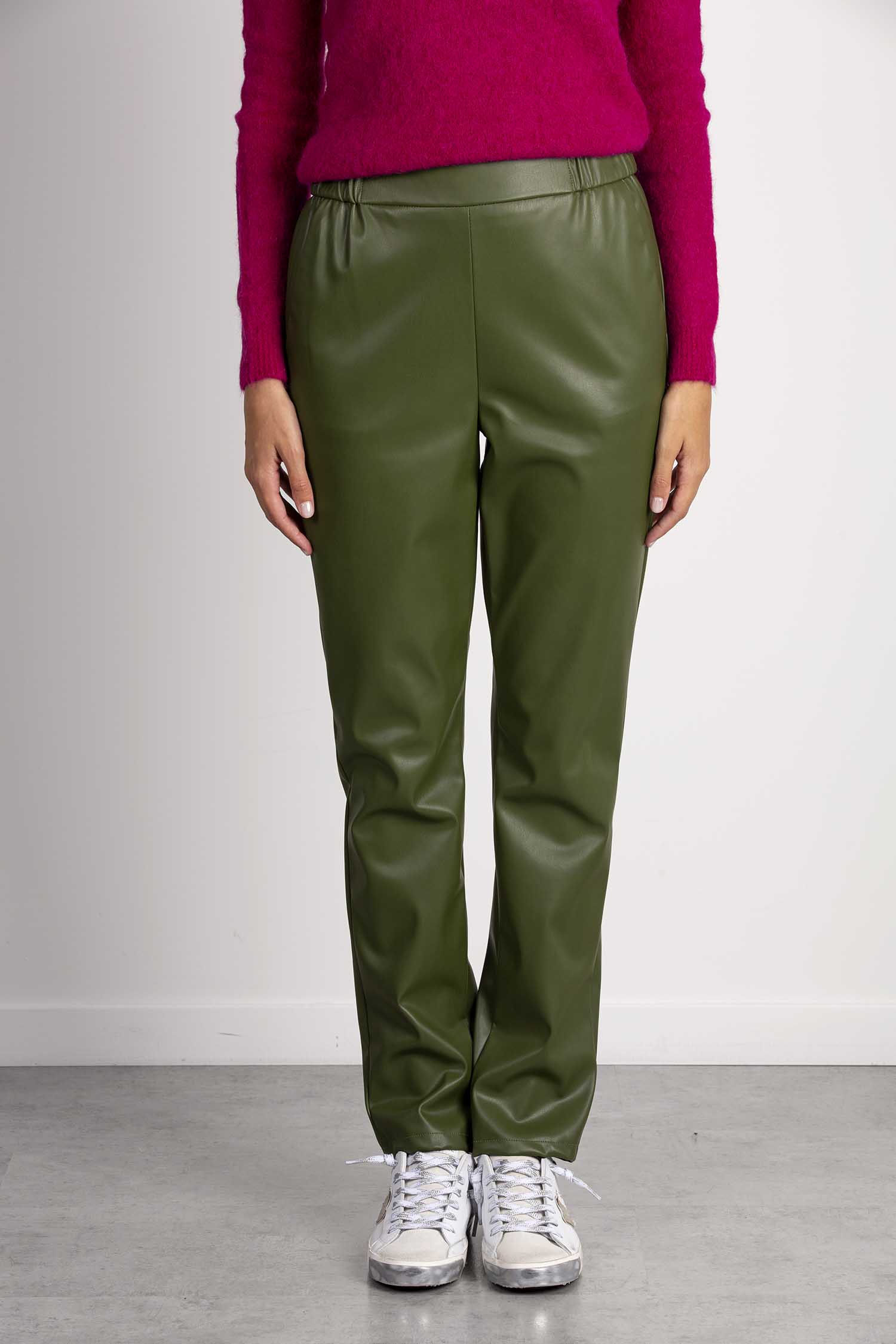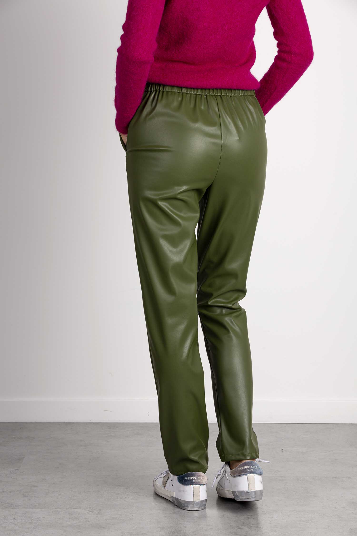 Pantaloni in jersey spalmato, linea a sigaretta.