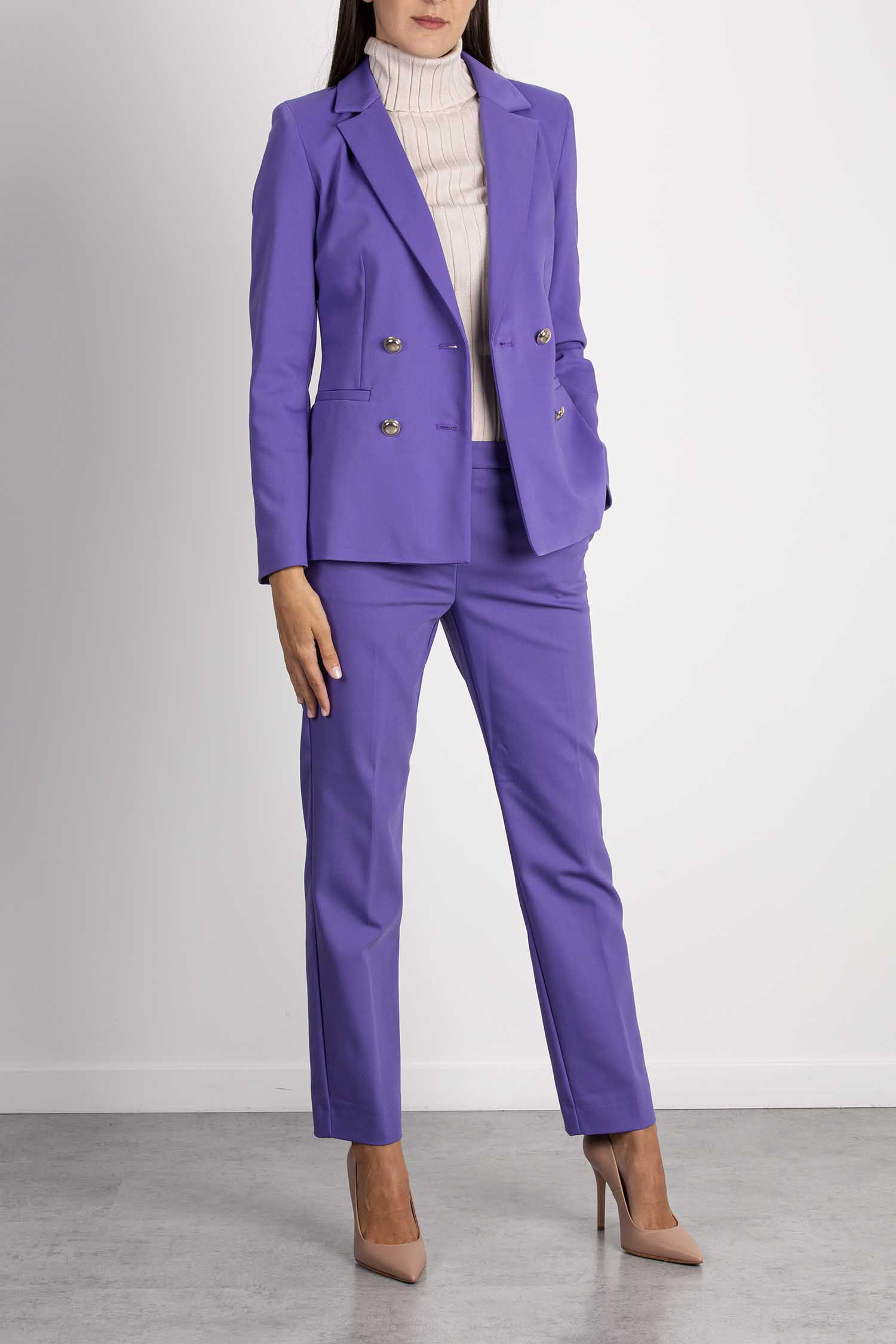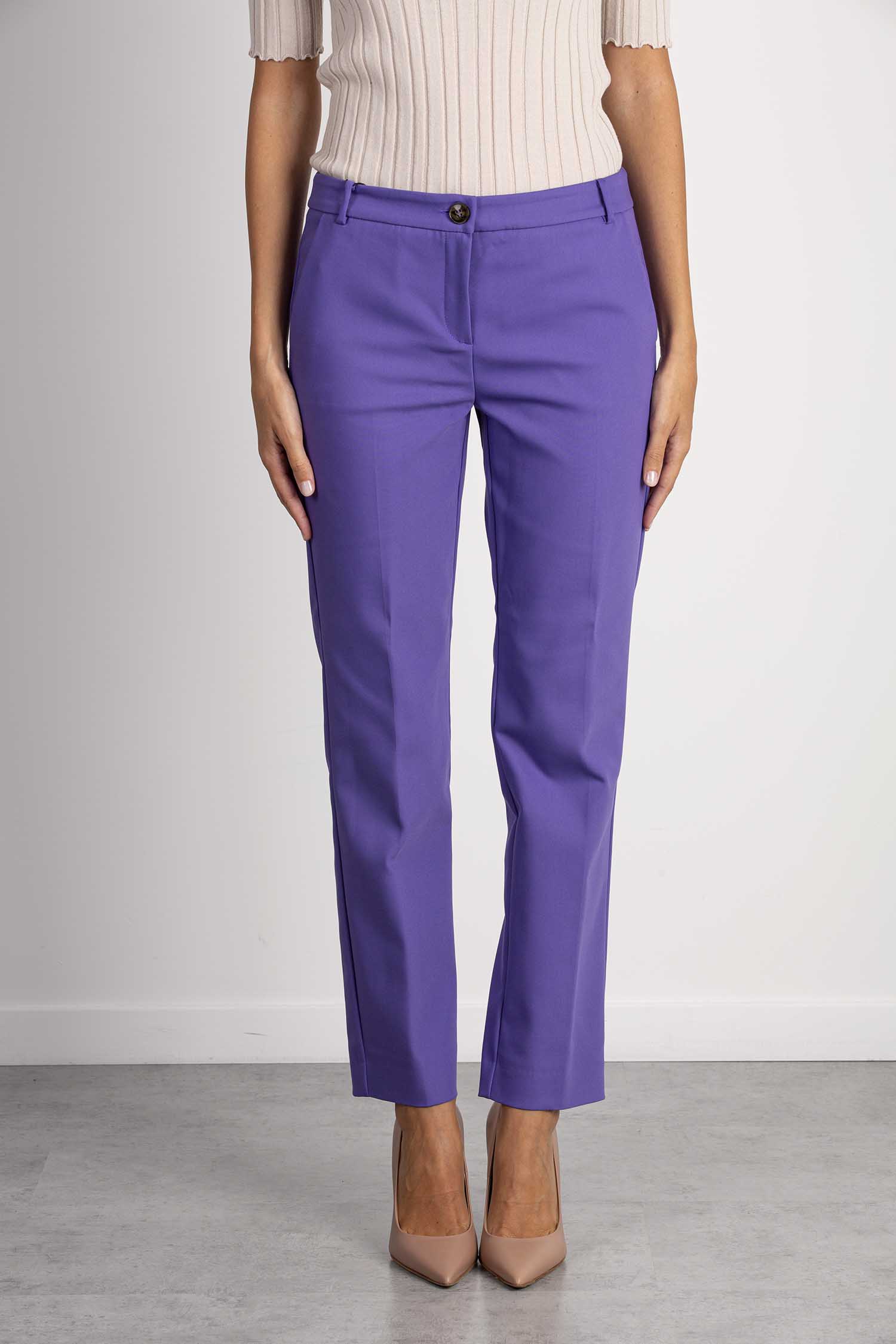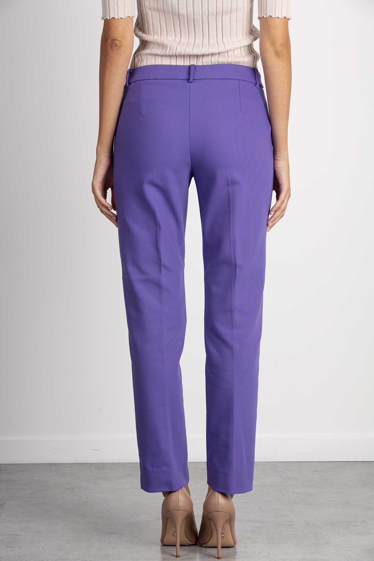 Chiusura con bottone e zip nascosta, tasche alla francese. Piega stirata fronte e retro.