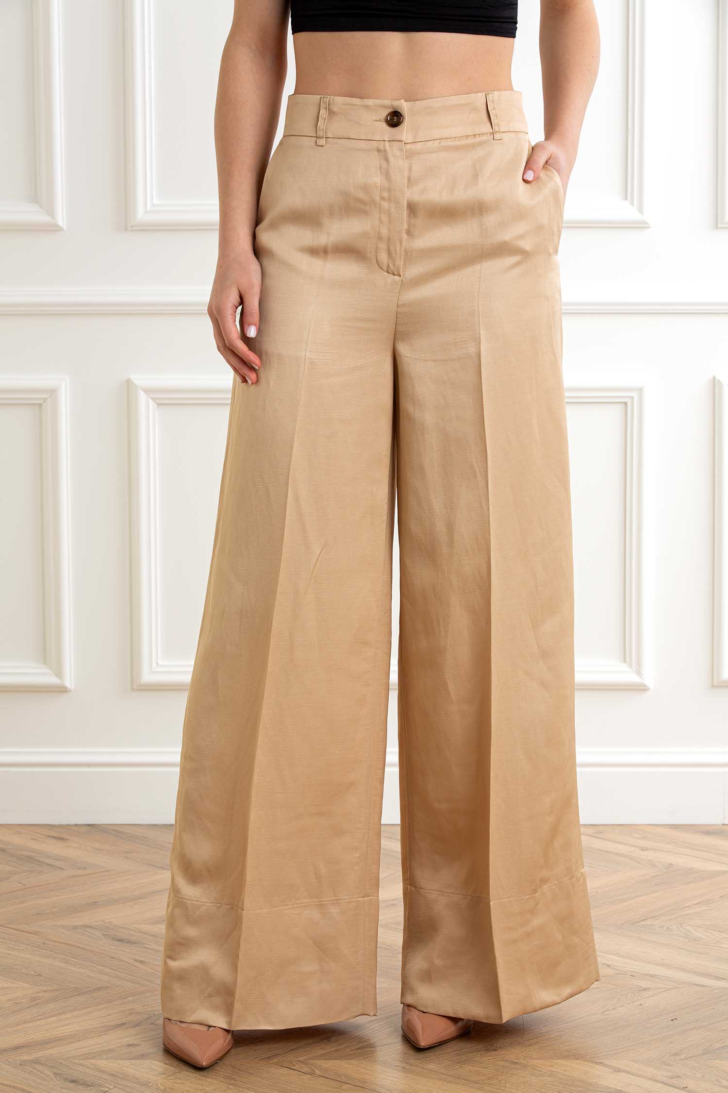 Pantaloni wide leg beige in lino/viscosa