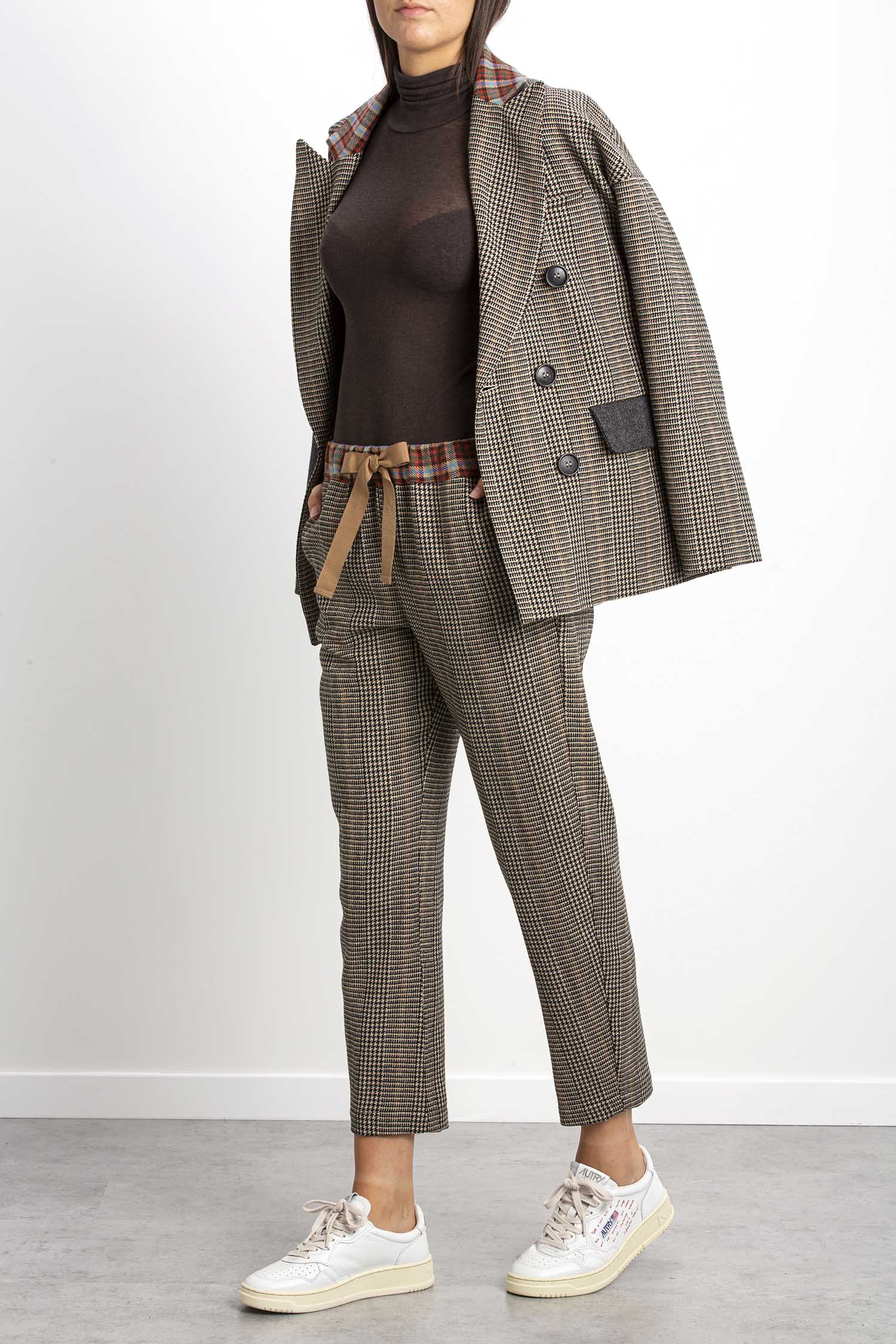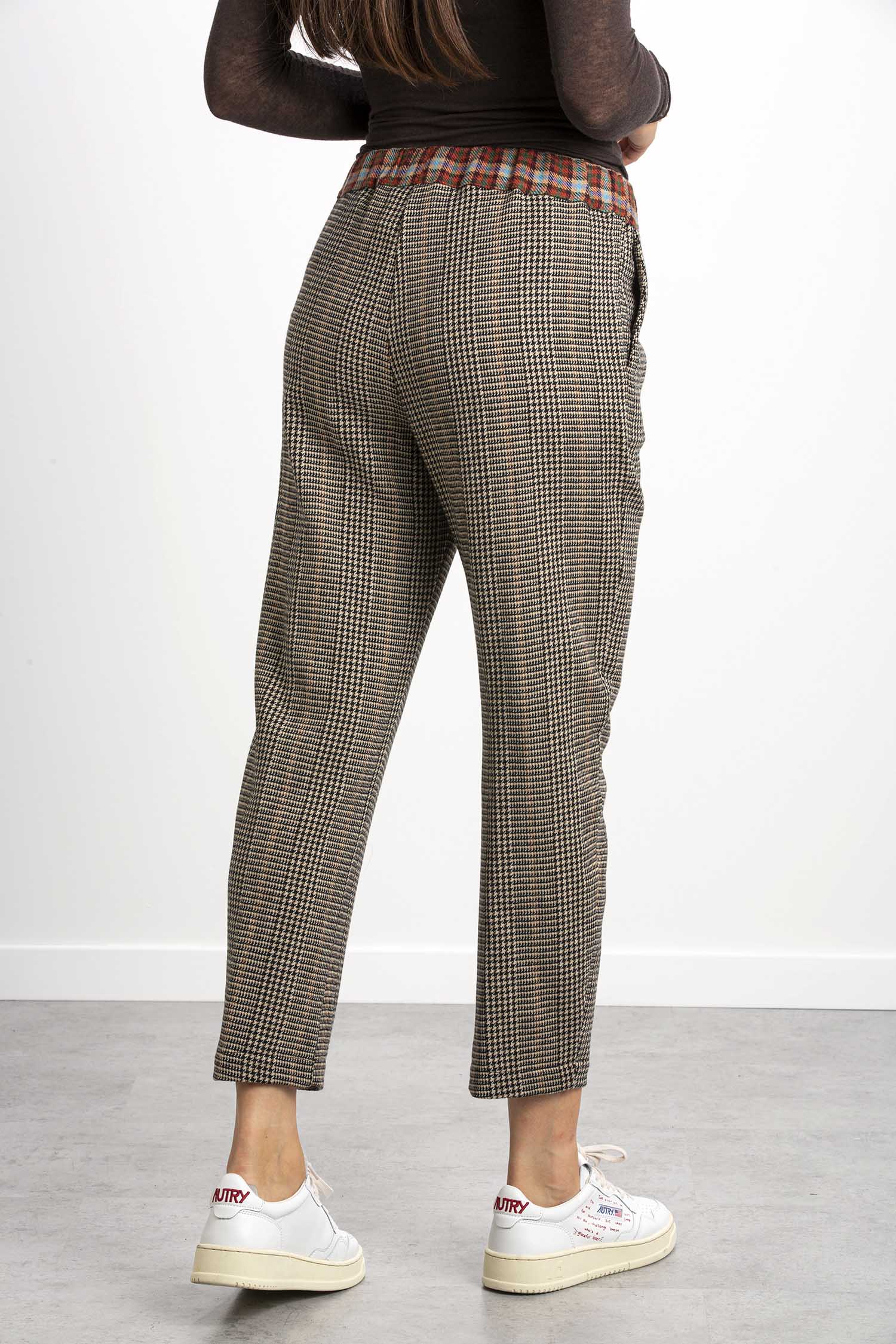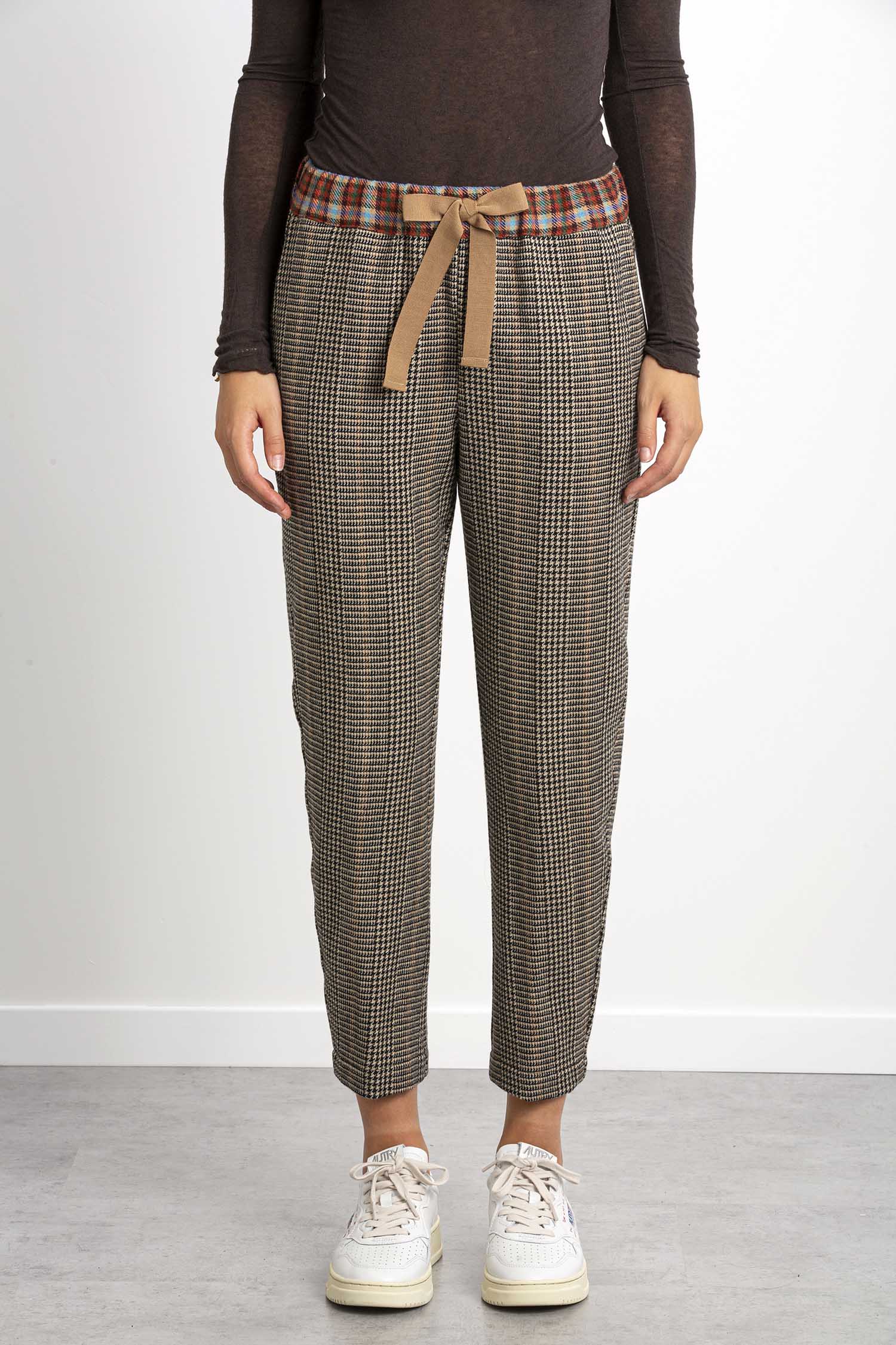 pantalone in flanella modello jogger a vita alta con coulisse in vita in tono, tasche a scomparsa ai lati, lunghezza sopra alla caviglia.