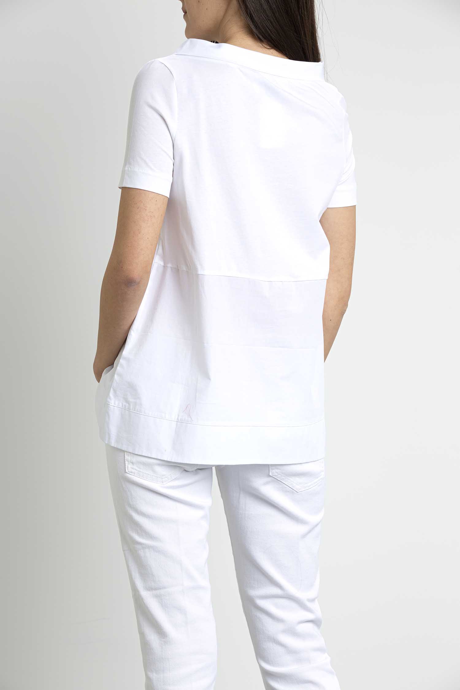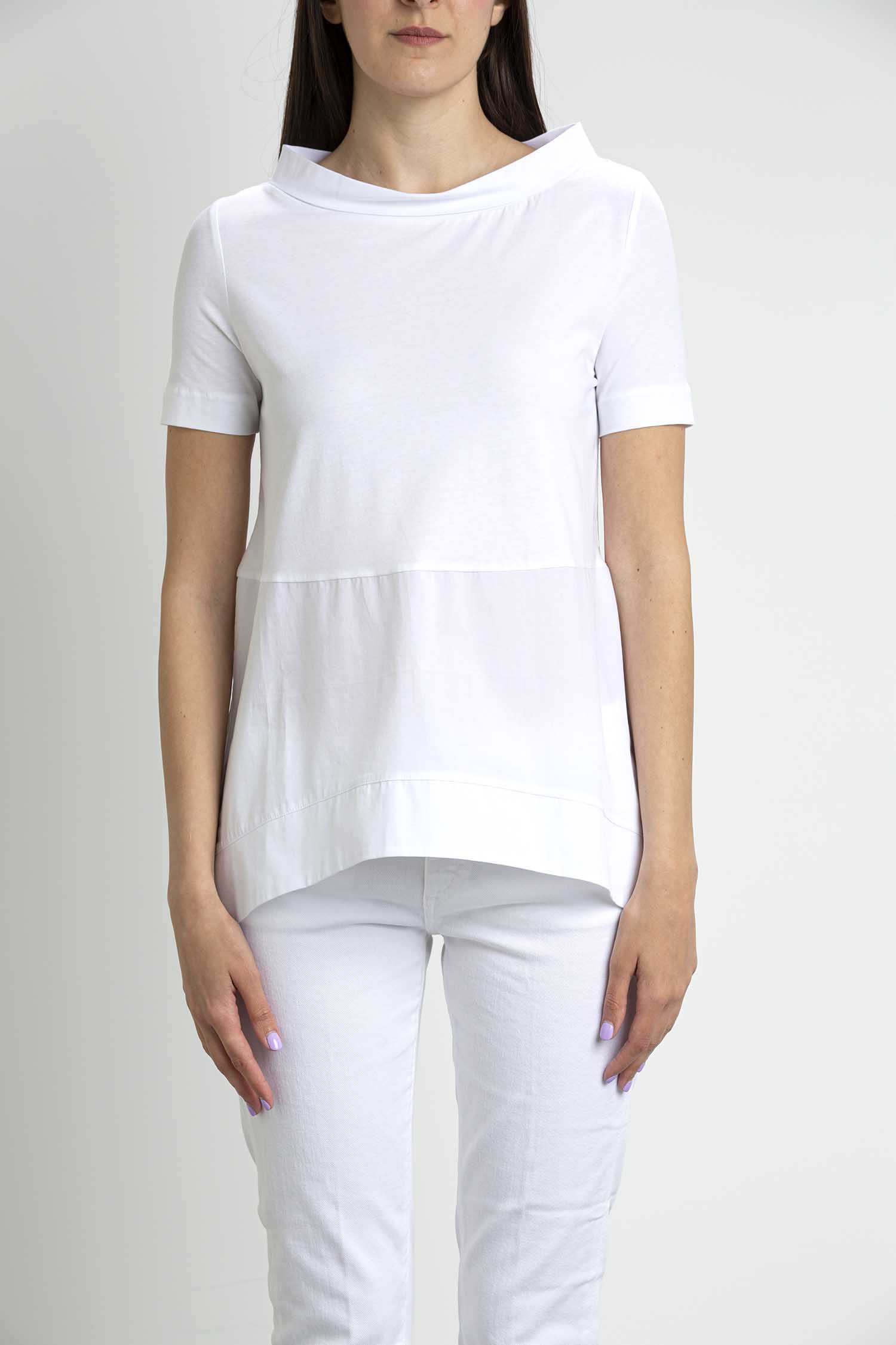 Tshirt collo Tiffany in jersey di cotone tinta unita. Insero e balza sul fondo in popeline di cotone in tono. Regular fit.