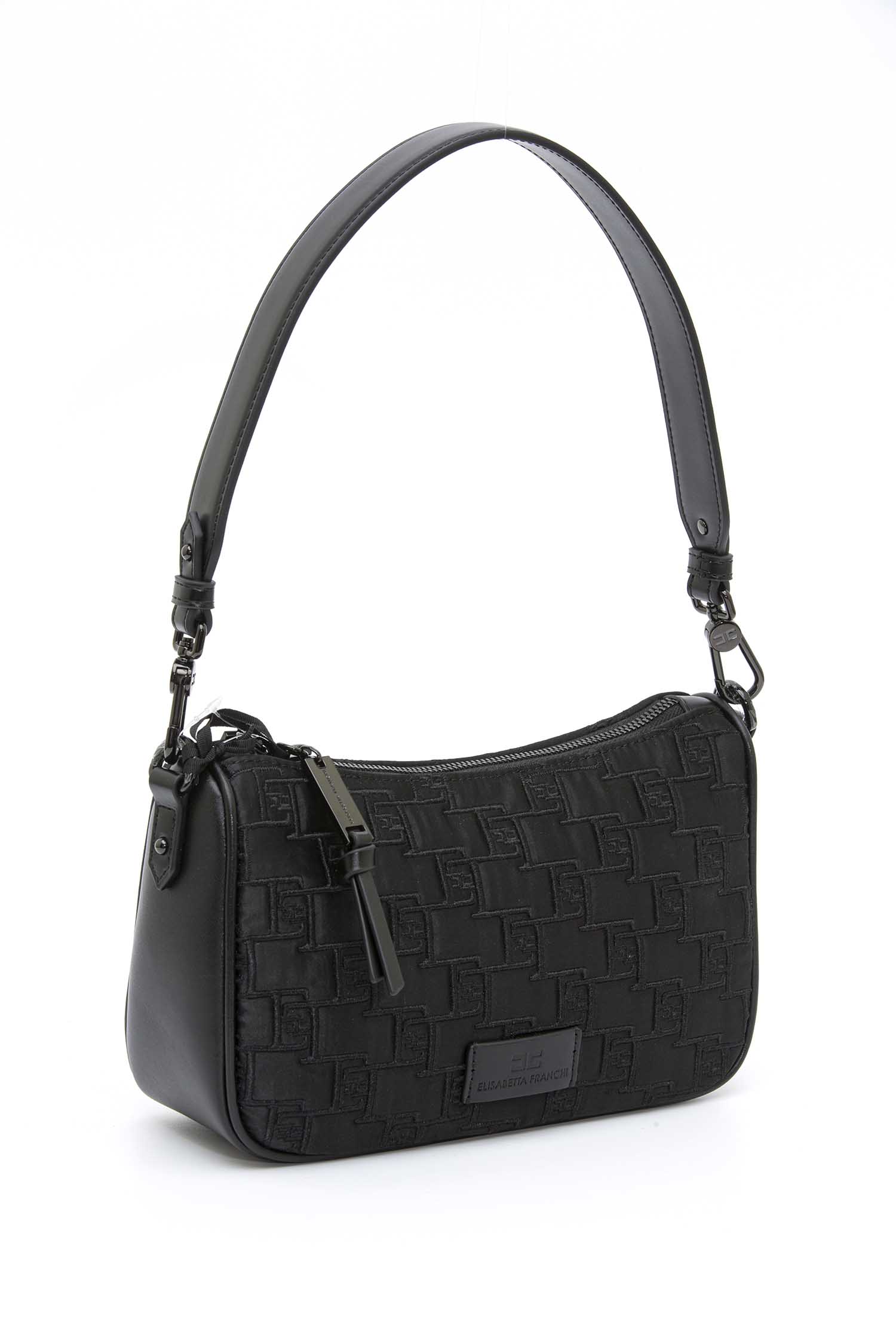 Borsa a spalla piccola in raso ricamato con logo effetto embossed. È caratterizzata da chiusura con doppia zip, tracolla removibile e patch logo sul fronte.