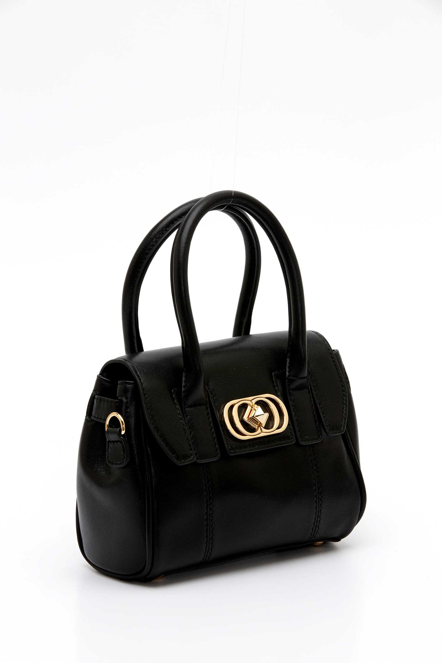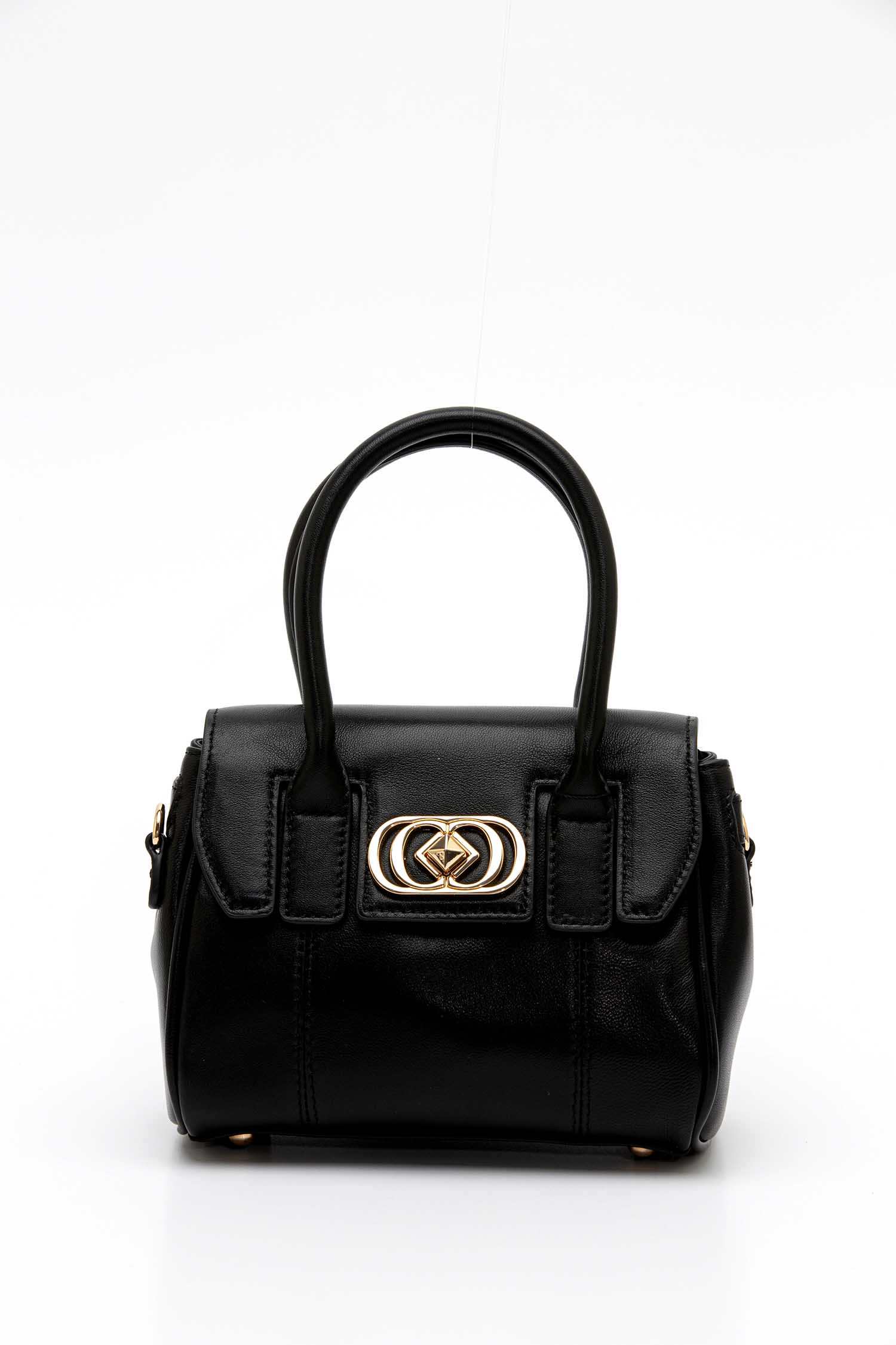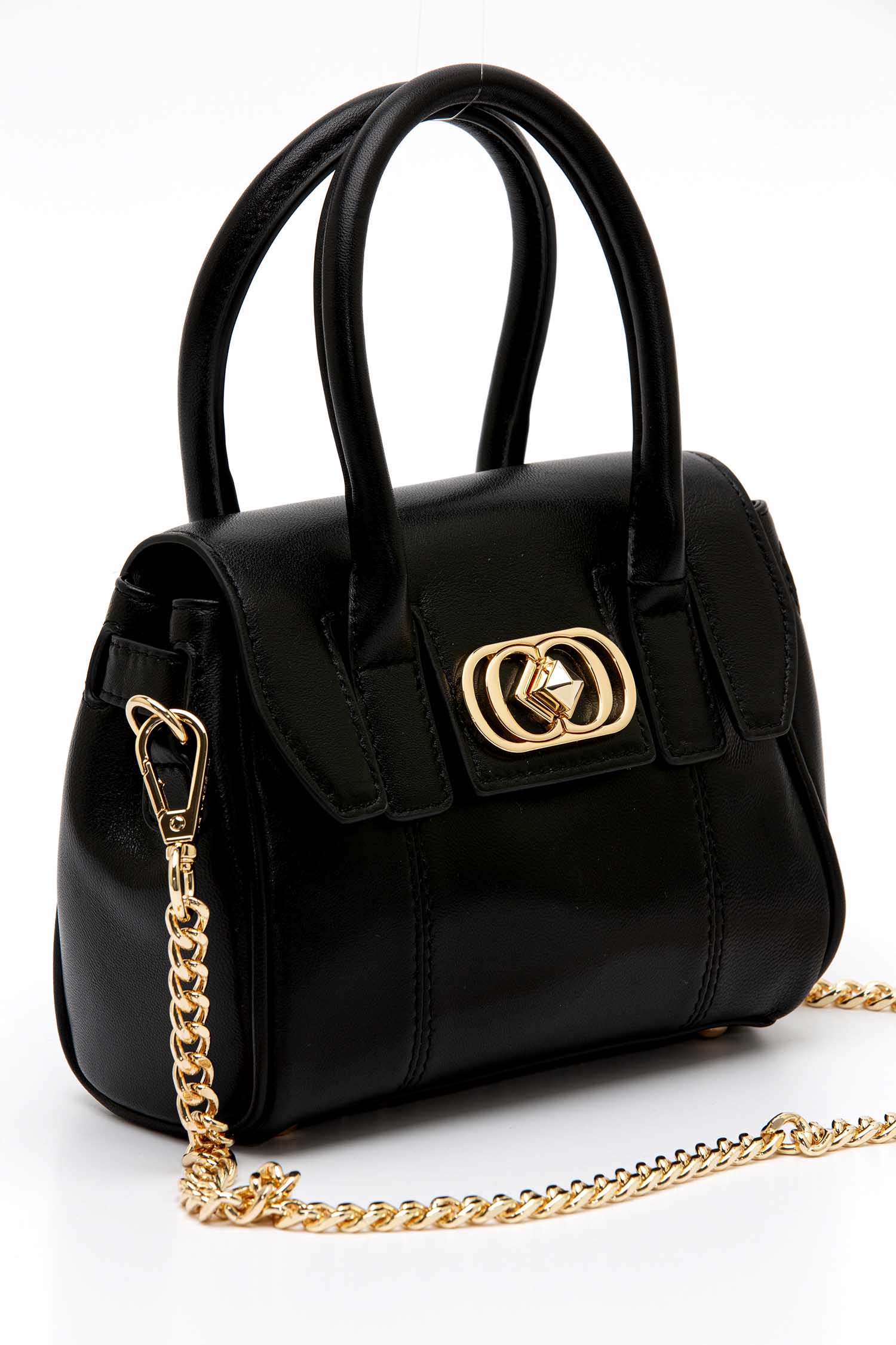 Borsa a mano in pelle con tracolla di catena e chiusura gioiello.