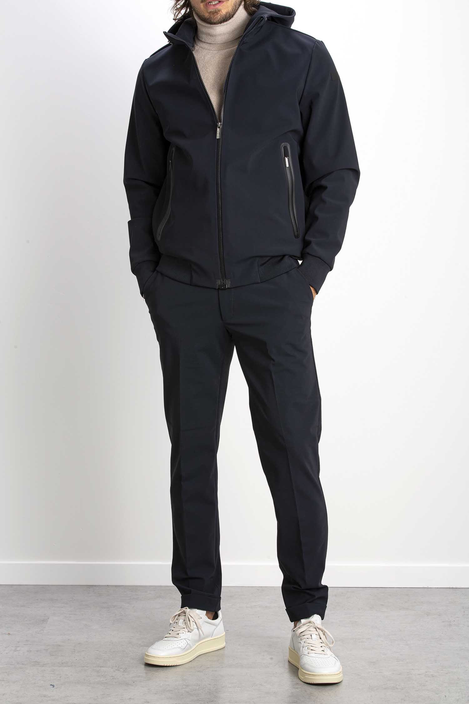 Questo capo è stato realizzato con un tessuto progettato utilizzando il metodo esclusivo RRD “Holystic Technology 3” che garantisce funzionalità, stile e unicità del prodotto grazie a tre componenti che, uniti insieme, ne costituiscono la struttura: lo shell in poliammide/Lycra® super matt (165g/m2 80% polyamide e 20% elastane) viene unito a una membrana poliuretanica elastica, traspirante, anti acqua e anti vento capace di assicurare una resistenza di 5.000 mm di colonna d’acqua. Nella parte interna, un pile elasticizzato effetto velluto garantisce termicità e facilità di movimento. Il suo aspetto “pulito” e senza pieghe è accentuato dalle zips tasca completamente termosaldate al tessuto che insieme alle termonastrature interne rendono il capo visivamente completamente stitchless. Al suo interno, un sistema di aggancio lo rende “inner” compatibile.