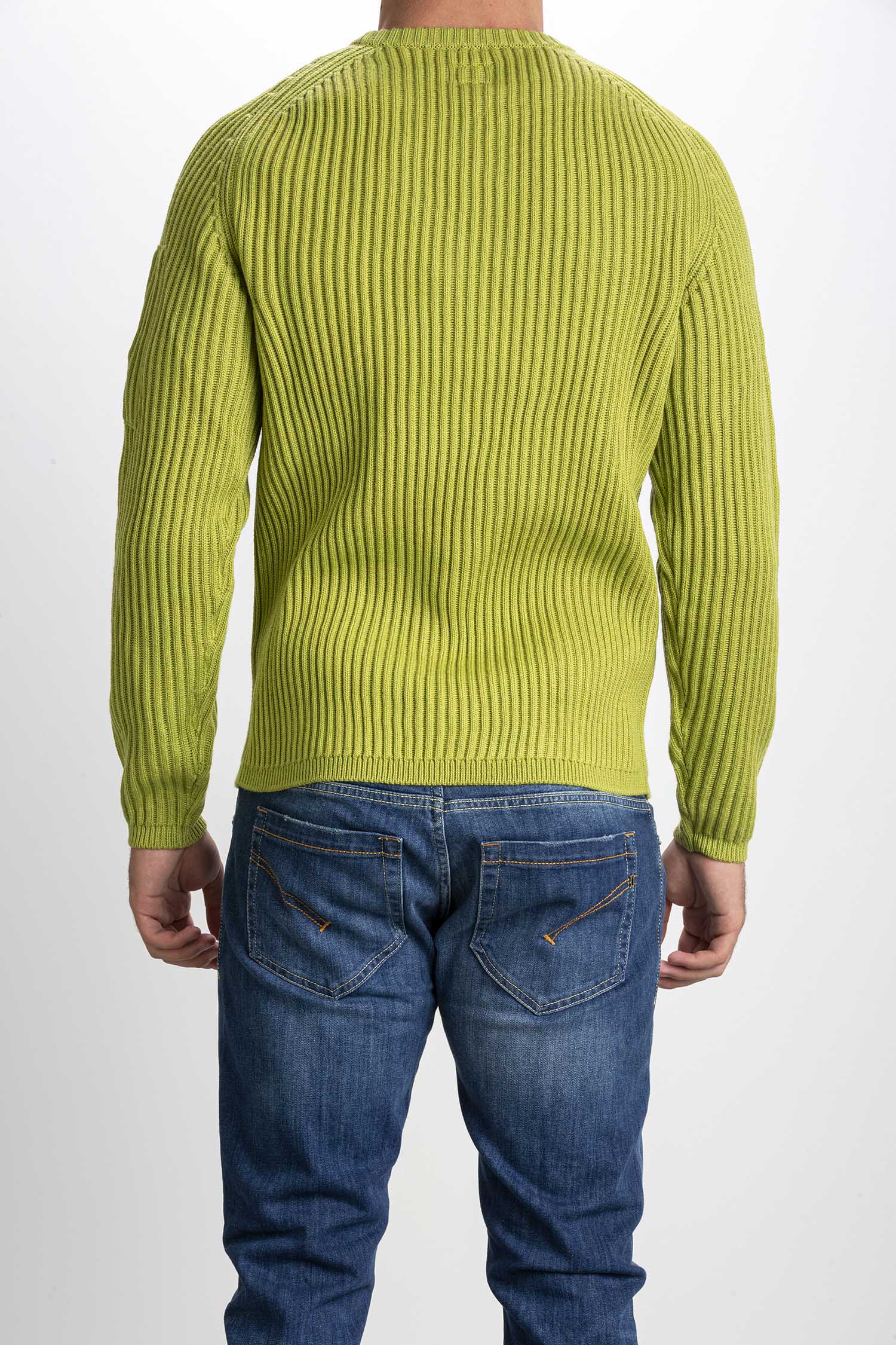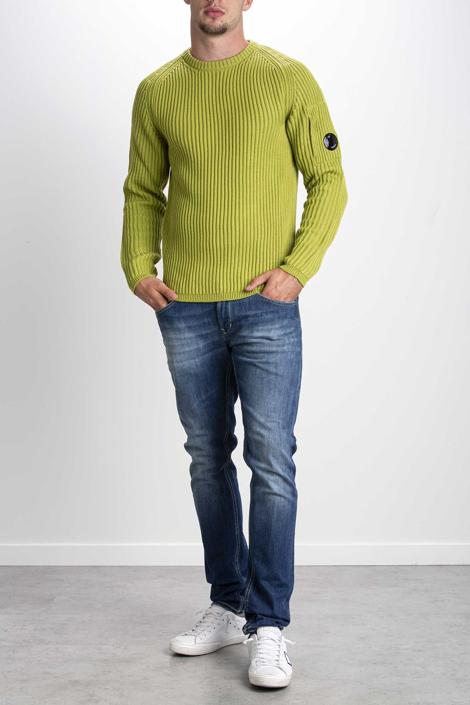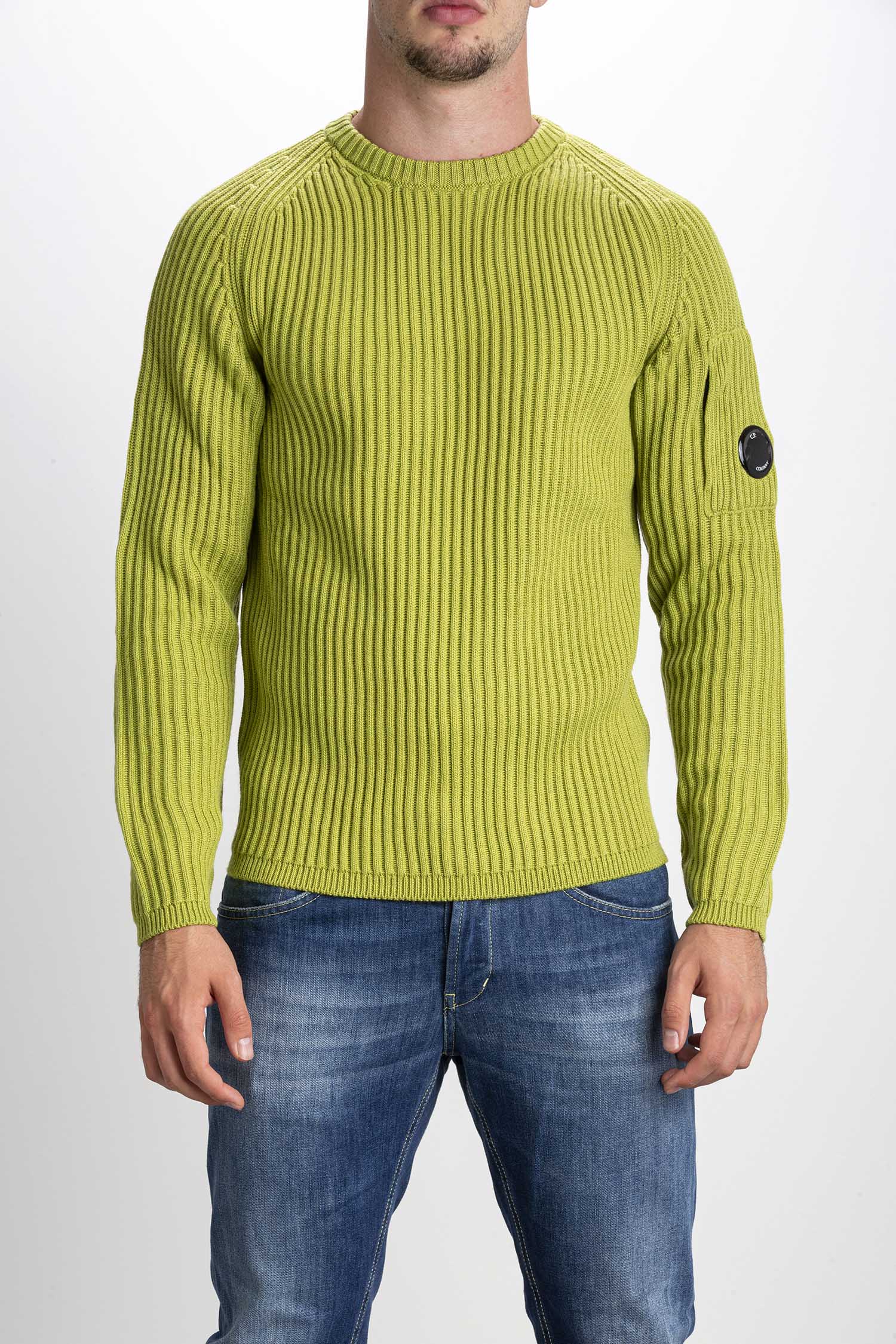 Maglione in lana merino con finiture a costine e C.P. Company Lens sul taschino della manica.