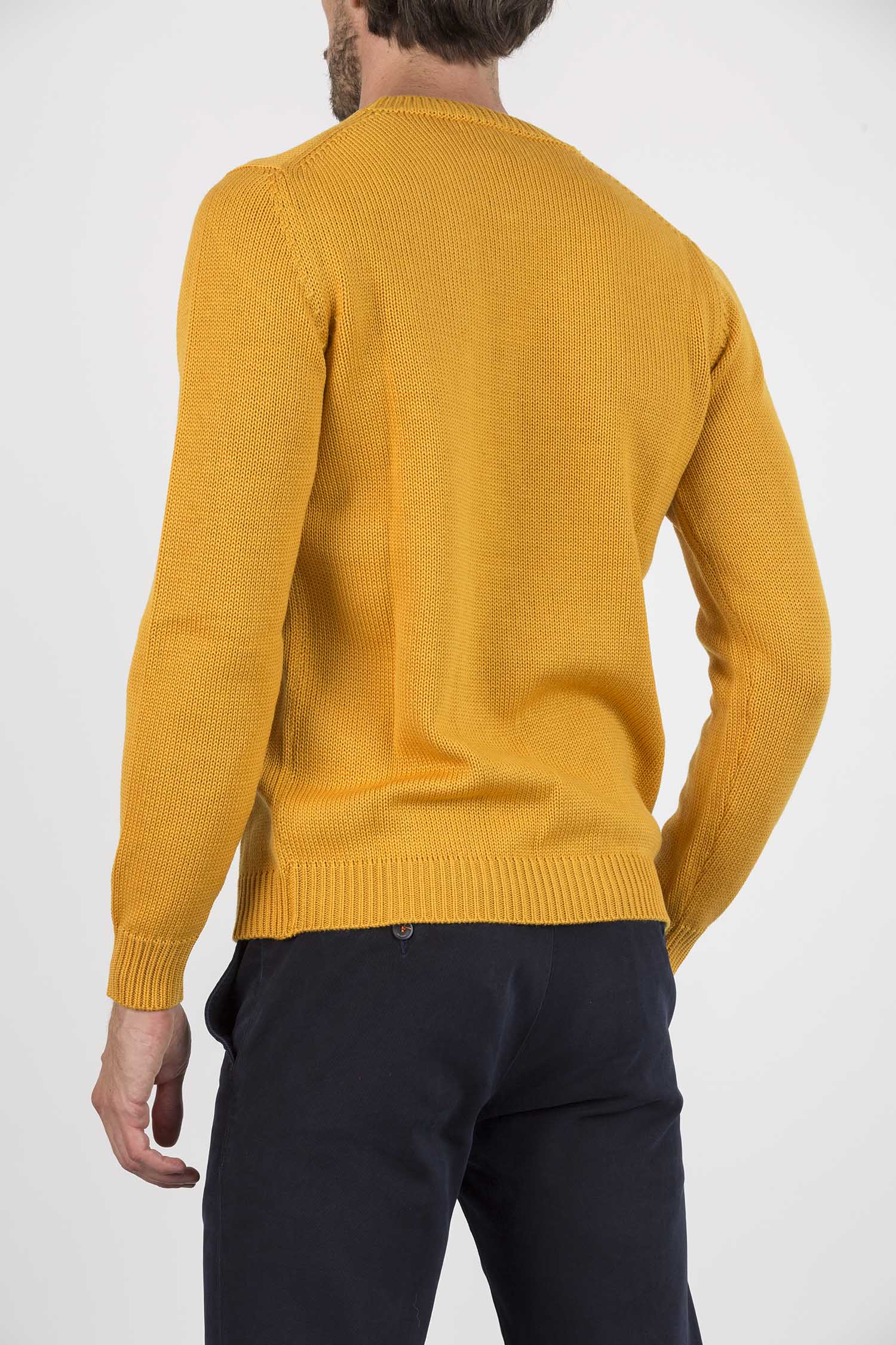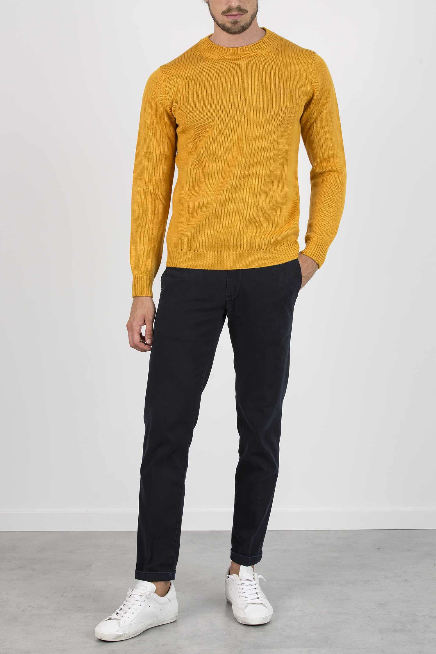 Maglione girocollo nero in lana merino e maniche lunghe. Presenta collo, polsini e orlo a costine.