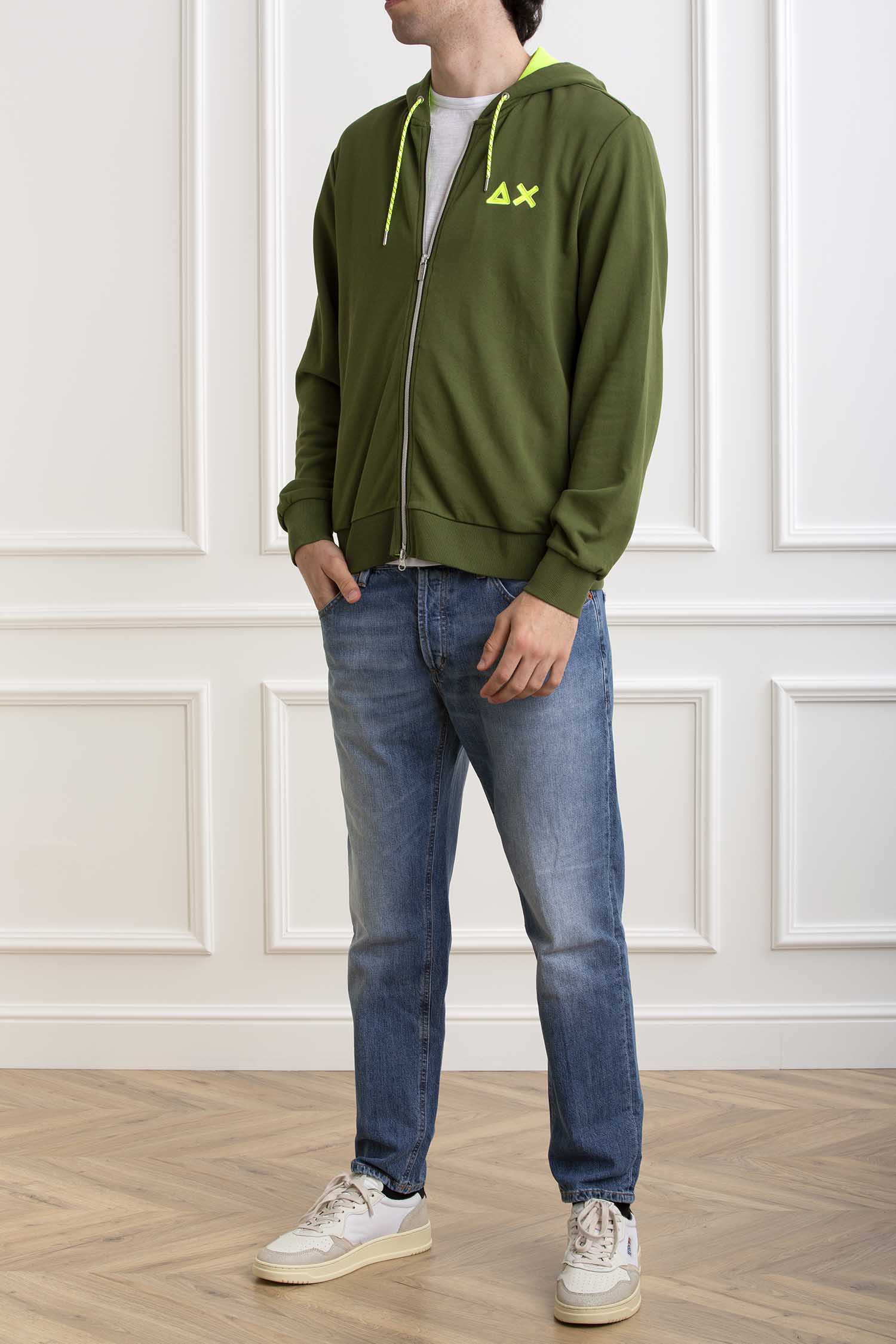 Felpa con zip e cappuccio;