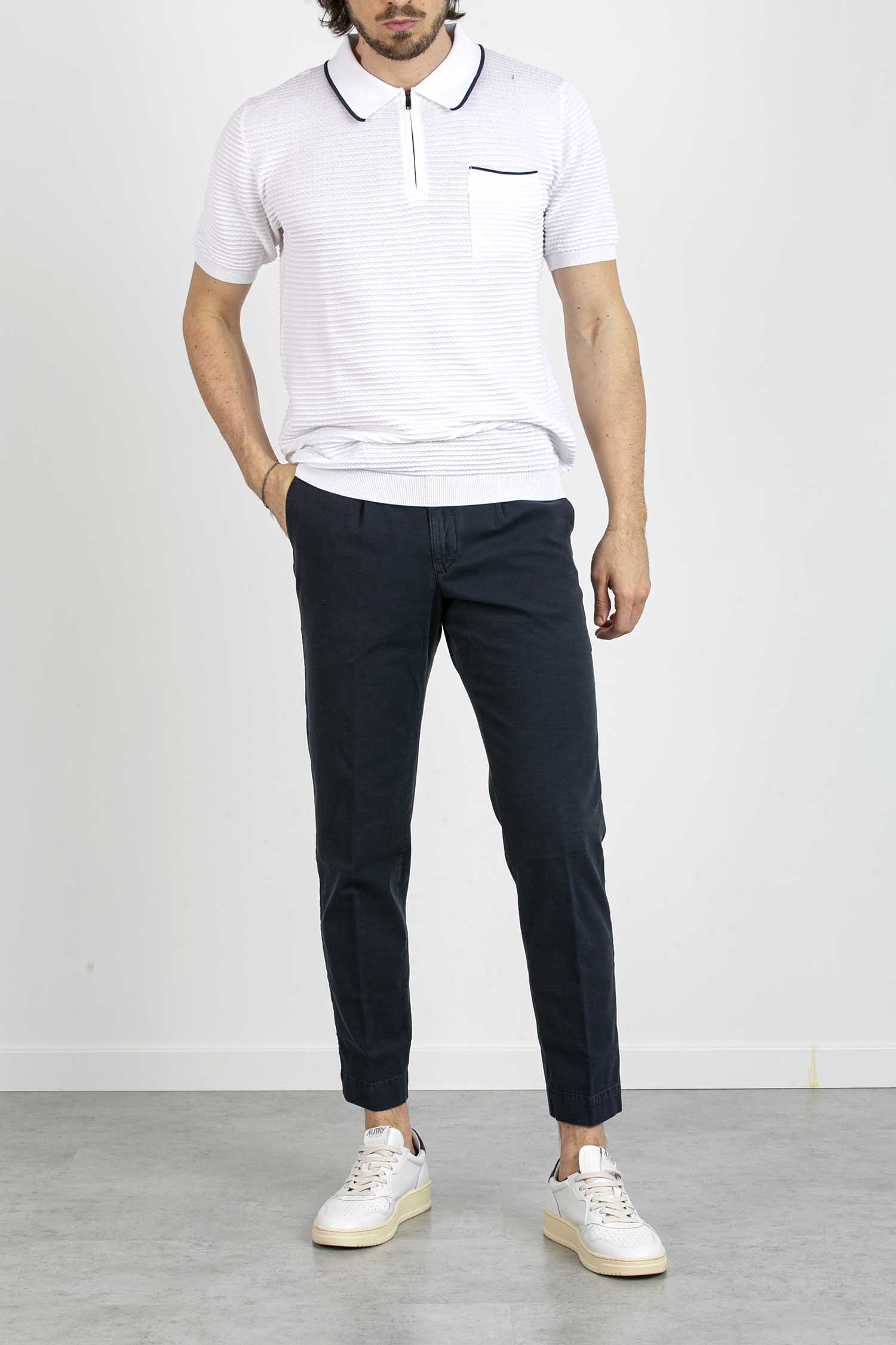 Il modello è alto 190 cm ed indossa la taglia 34.