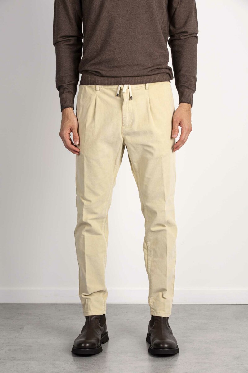 Pantalone tapered fit con elastico e coulisse in velluto a coste.