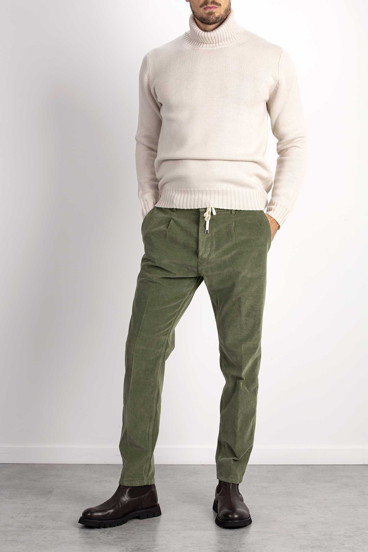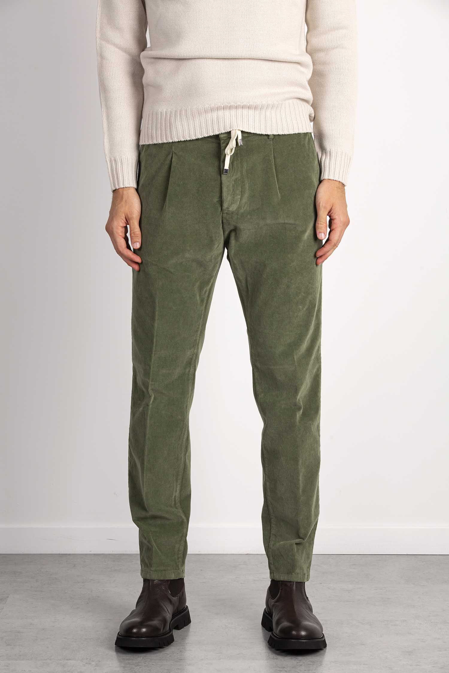 Pantalone tapered fit con elastico e coulisse in velluto a coste.