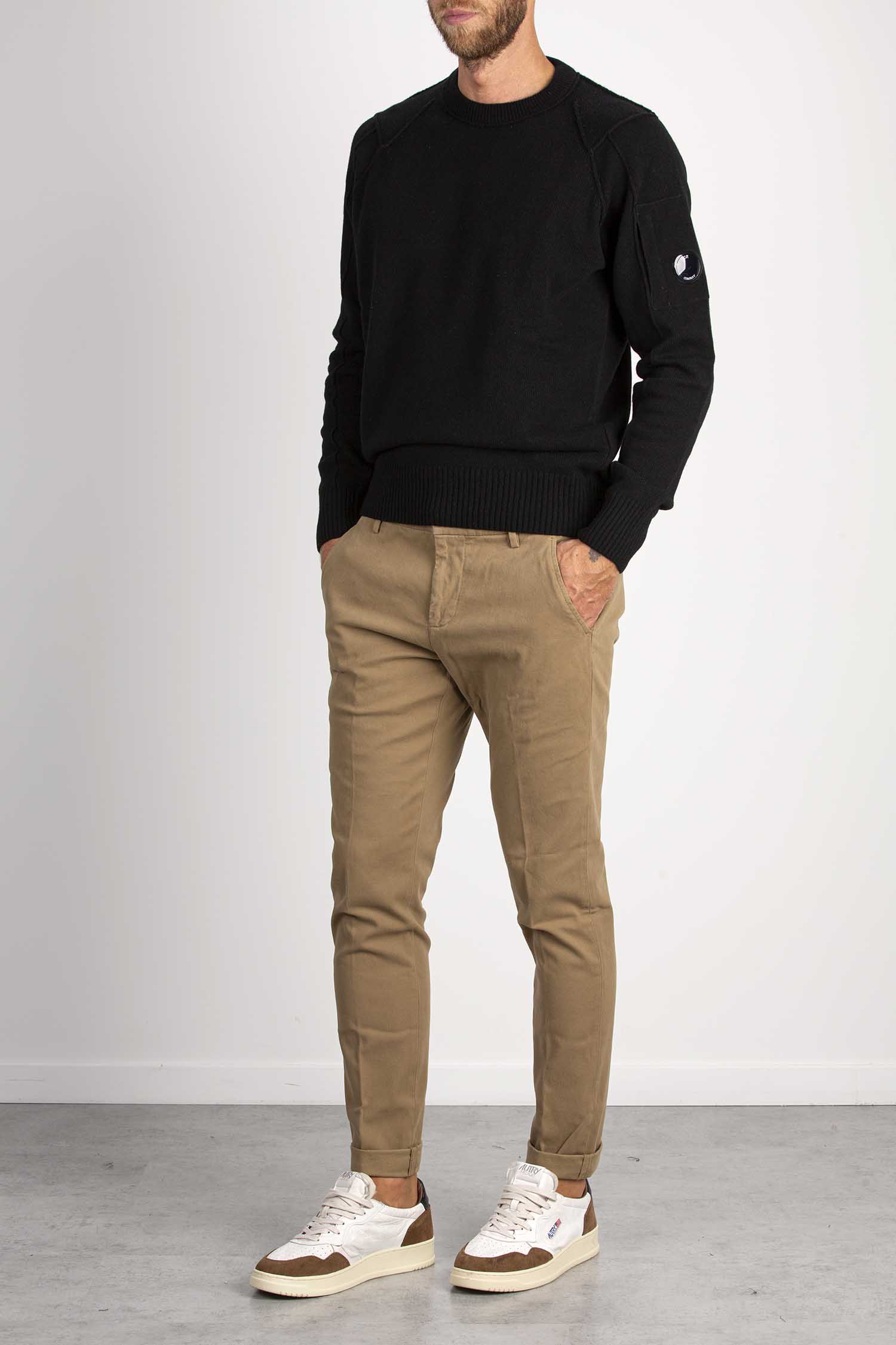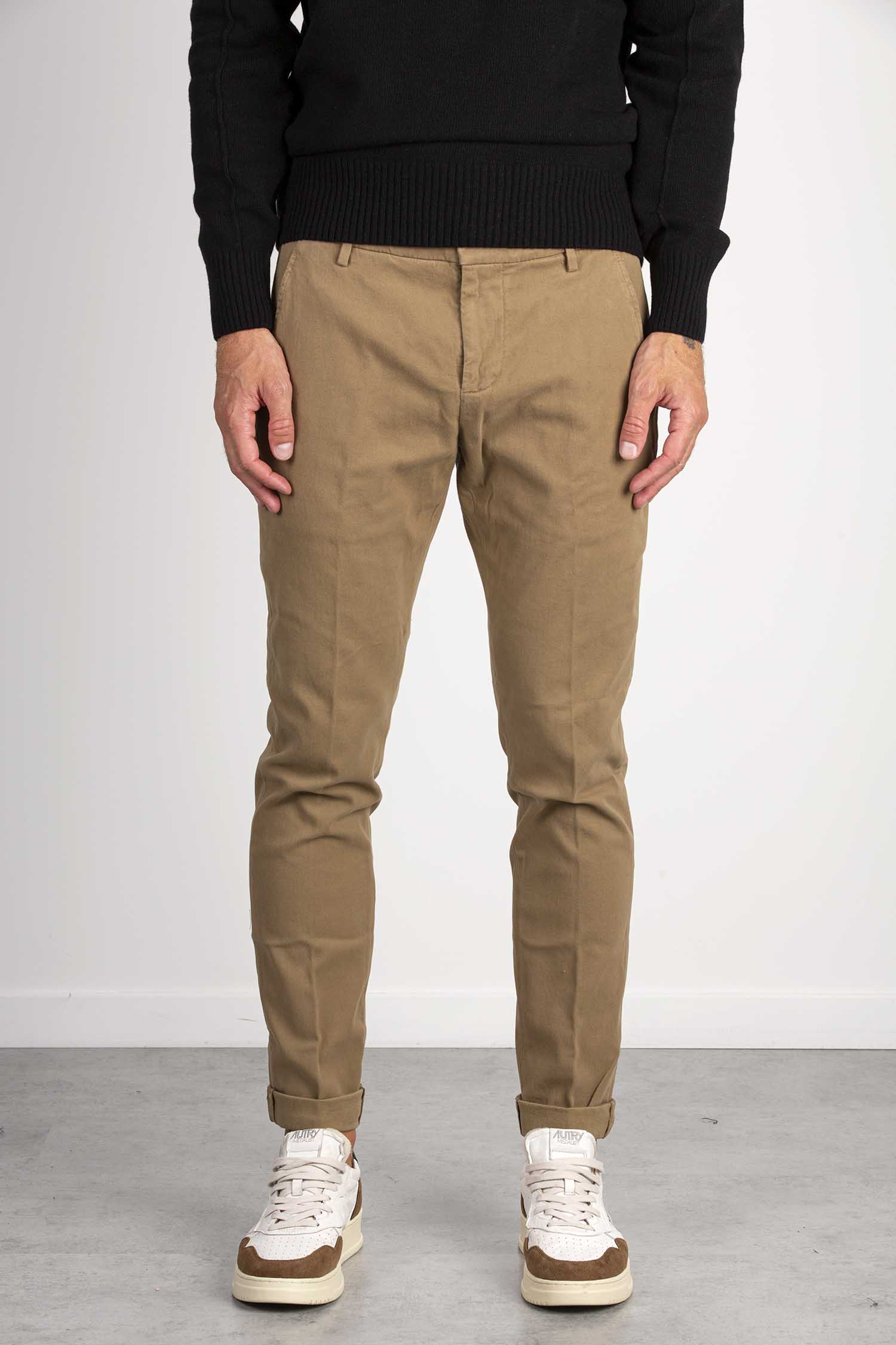 Pantaloni Gaubert slim chino, vita bassa, tasche a filetto posteriori. Canvas di cotone stretch. Tintura in capo vintage. Logo Dondup. Made in Italy