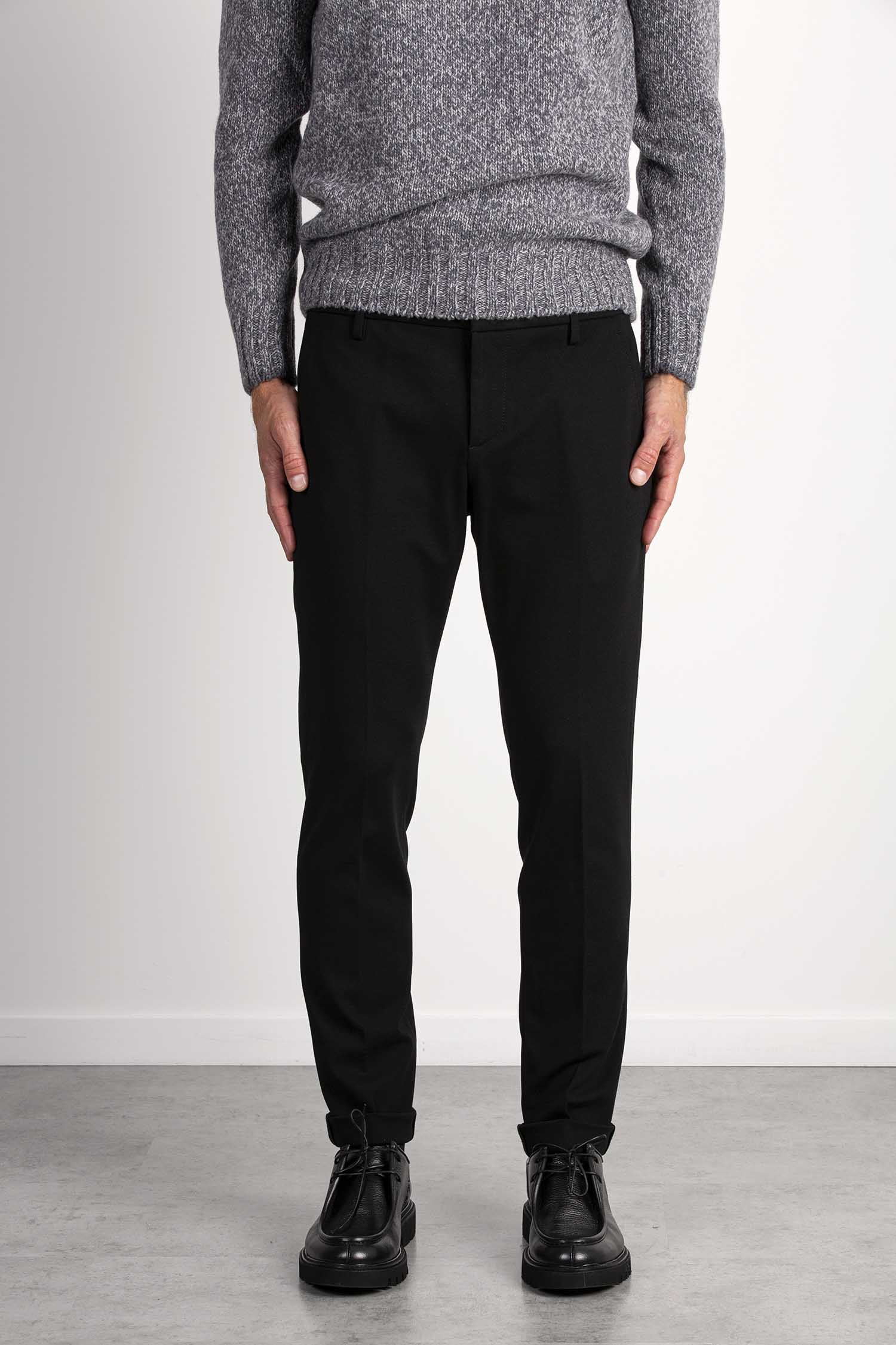 Pantaloni Gaubert slim chino, vita bassa, tasche a filetto posteriori. Punto milano. Logo Dondup. Made in Italy