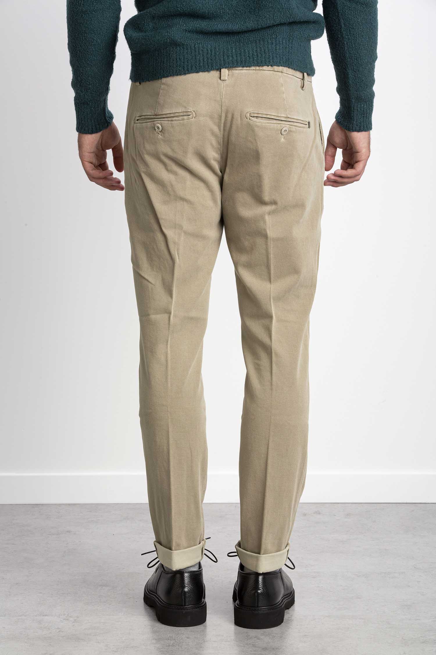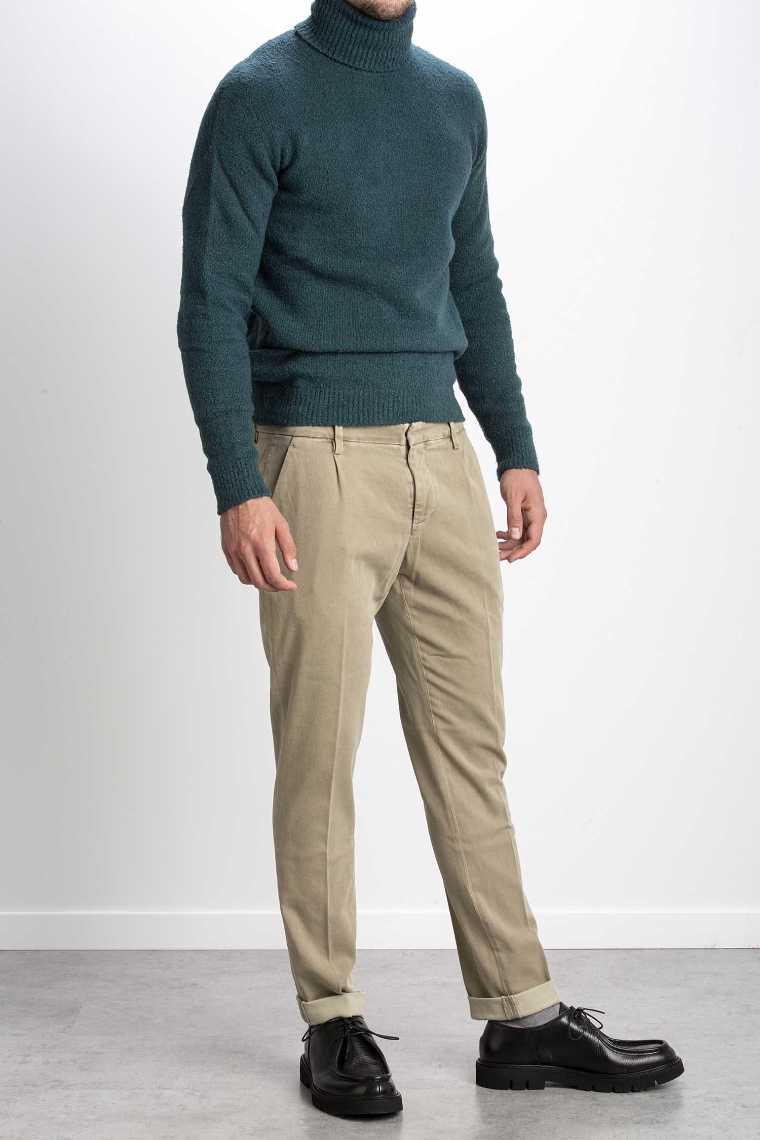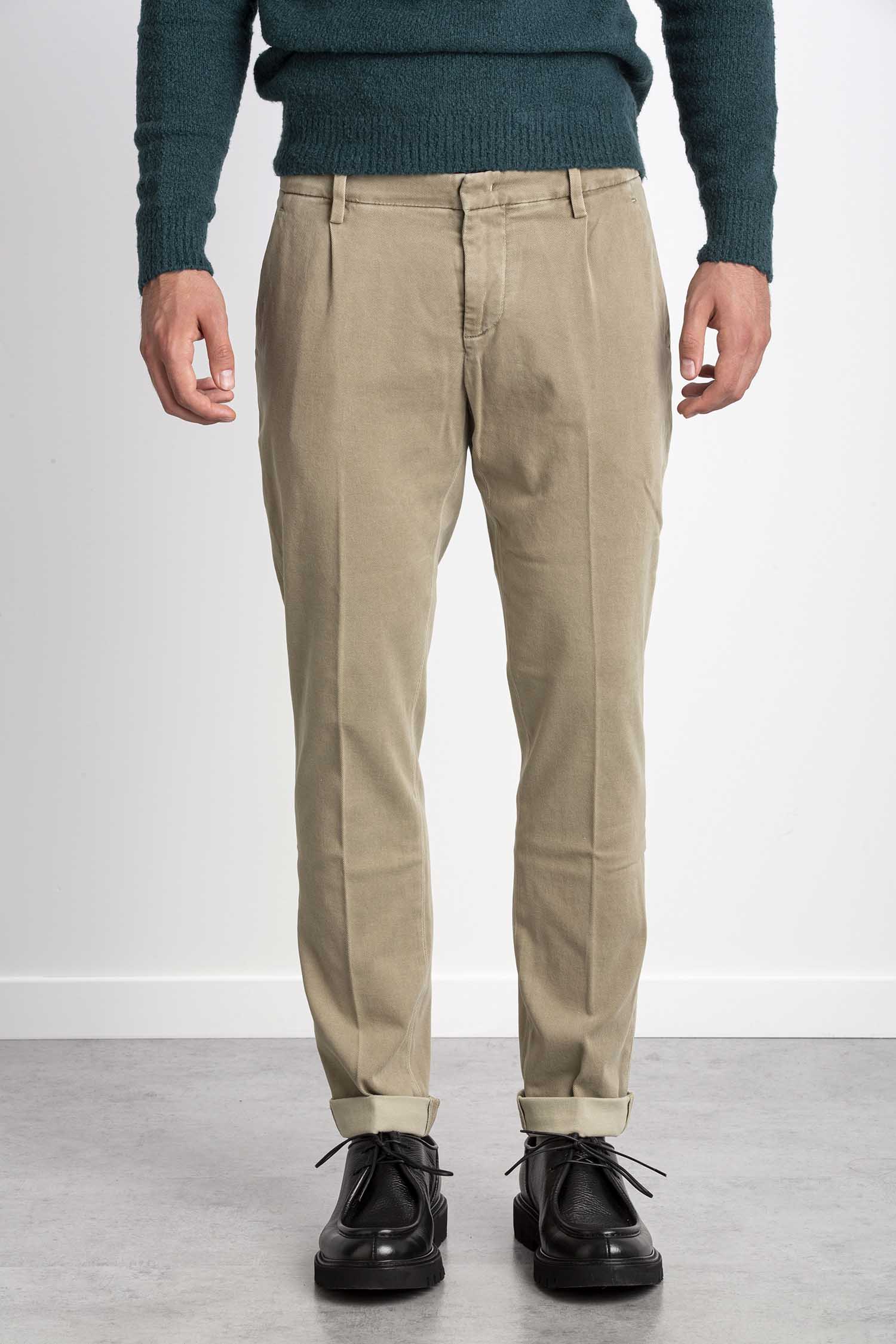 Pantalone Gaubert pinces slim chino, vita bassa, pinces sul davanti, tasche a filetto posteriori. Micro stampa. Tintura in capo. Logo Dondup. Made in Italy