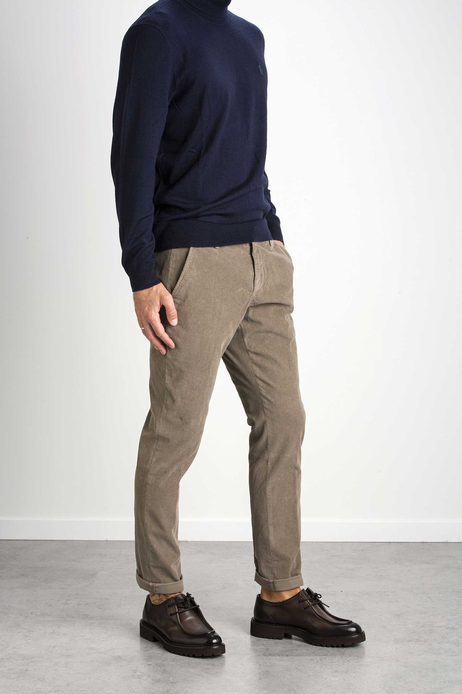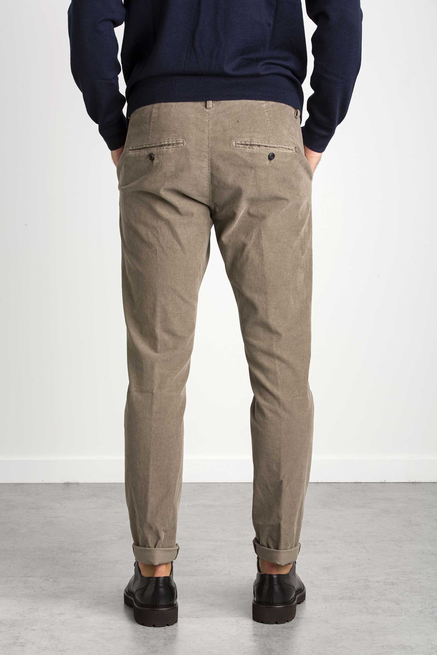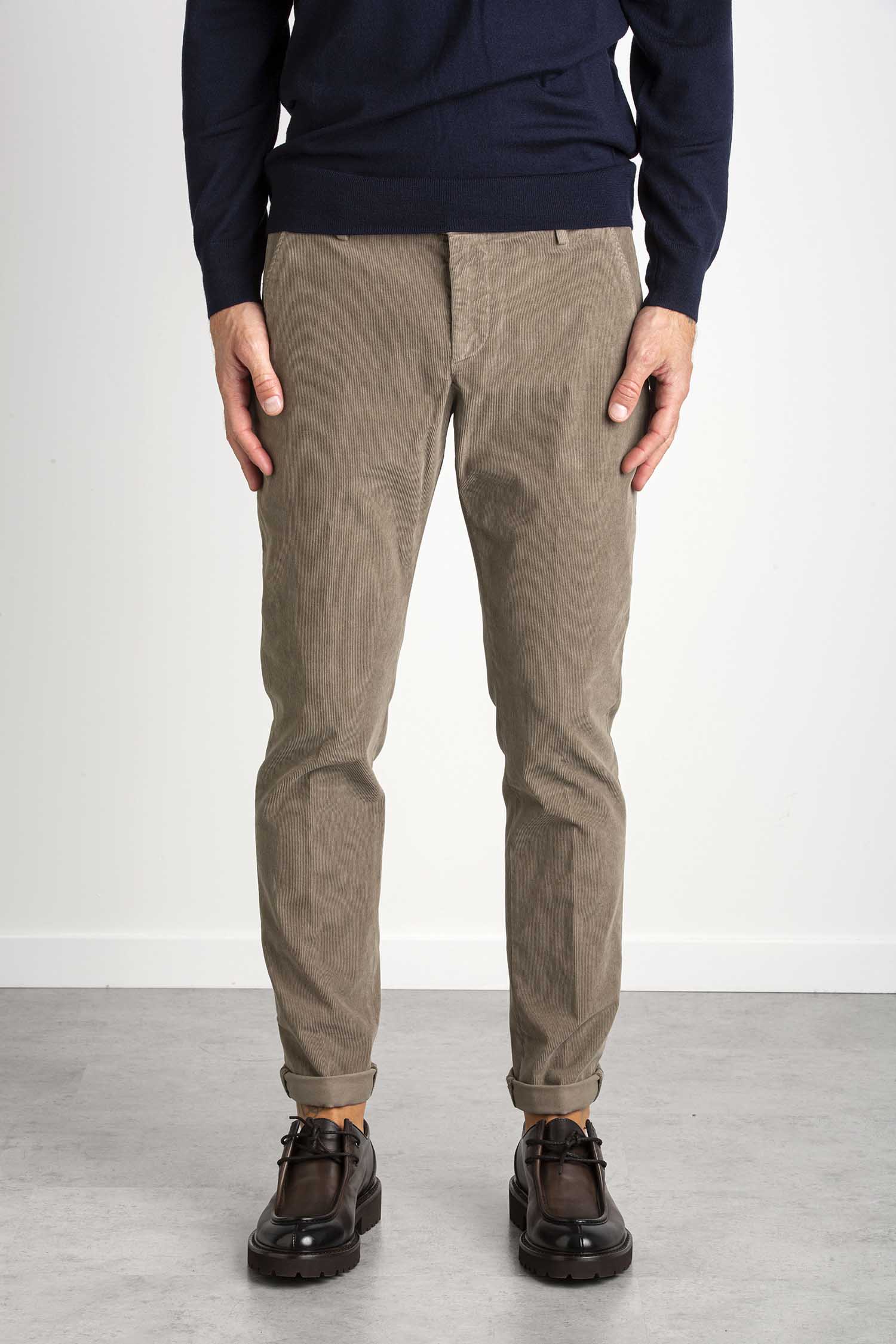 Pantalone Gaubert slim chino, vita bassa, tasche a filetto posteriori. Velluto a coste. Tintura in capo. Logo Dondup. Made in Italy