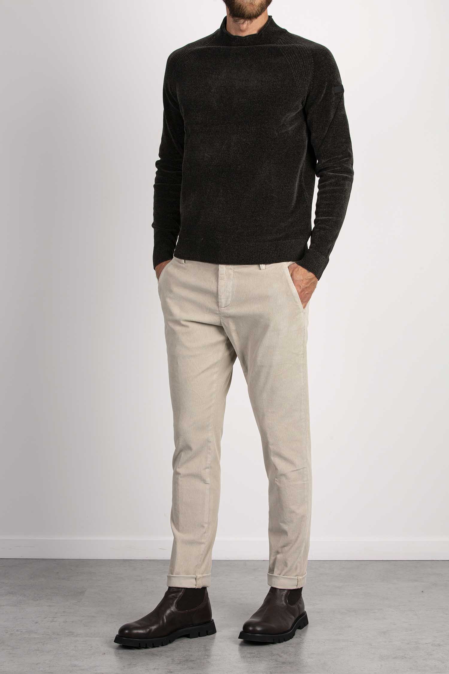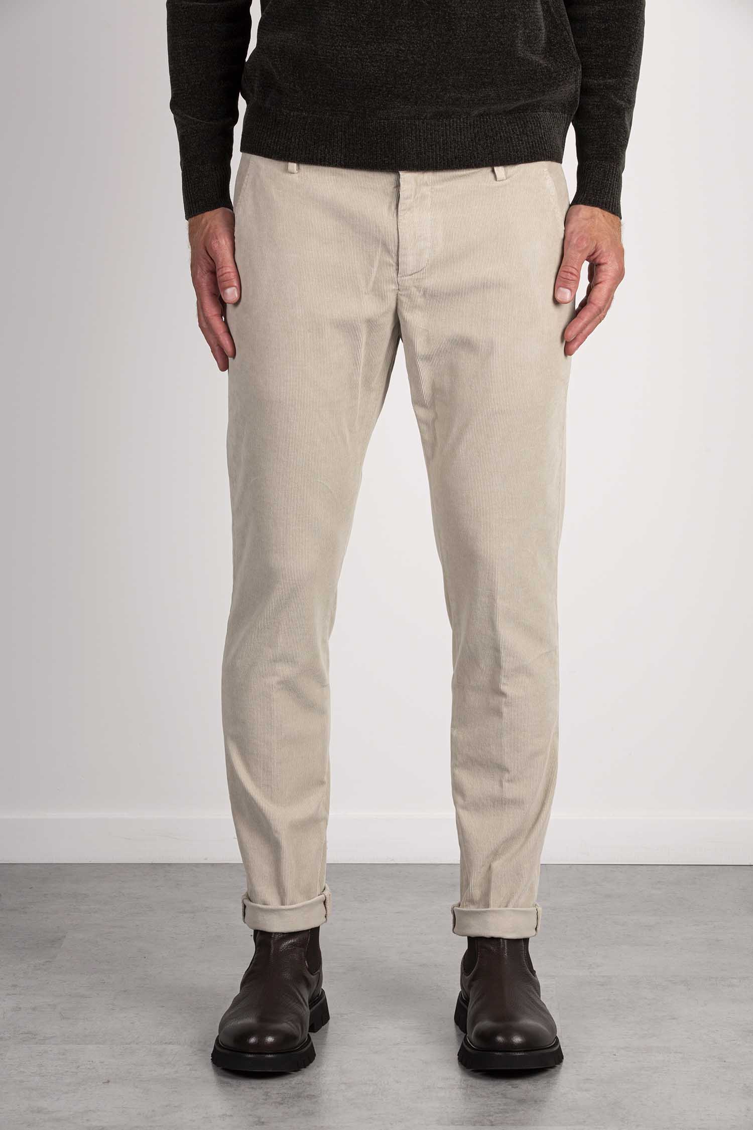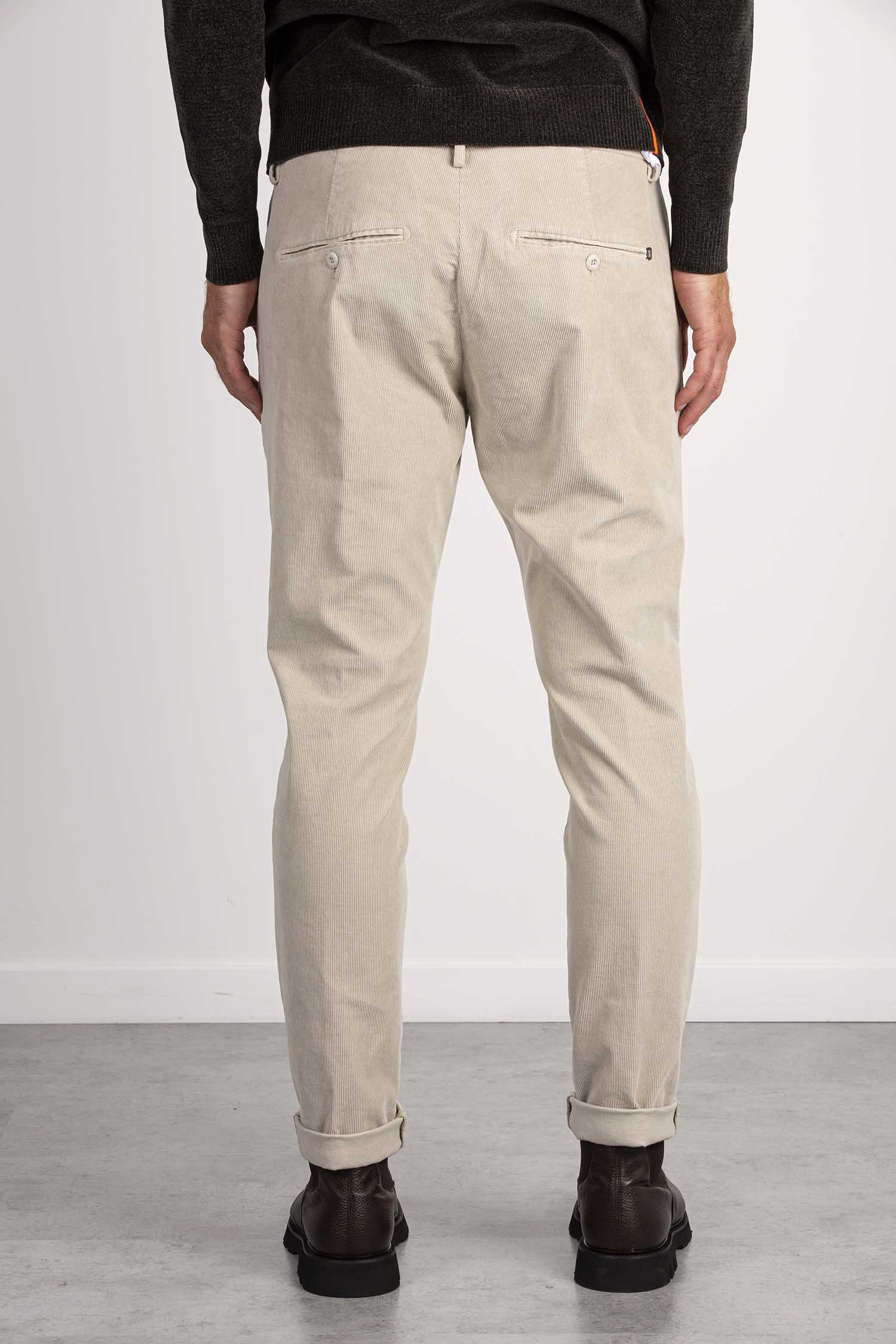 Pantaloni Gaubert slim chino, vita bassa, tasche a filetto posteriori. Velluto a coste. Tintura in capo reattiva. Logo Dondup. Made in Italy
