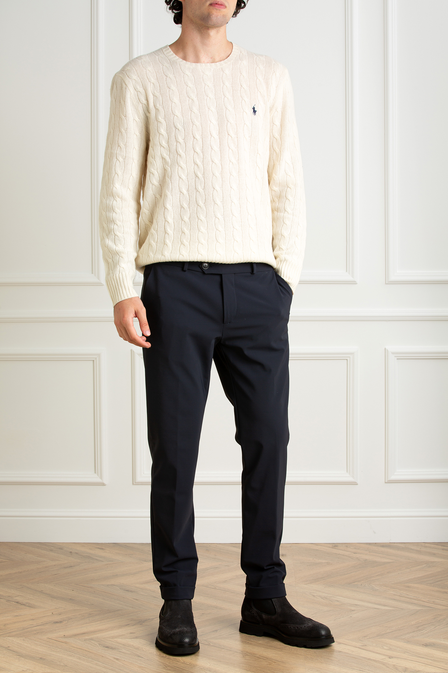 I pantaloni chino invernali slim fit si distinguono per le quattro micro fantasie geometriche stampate allover sull’esclusivo tessuto stretch SURFLEX®. Alla morbidezza al tatto e al look elegantemente opaco, nelle sobrie tonalità scure di stagione, si aggiungono le proprietà antipiega e no stiro, che rendono il modello particolarmente adatto a chi viaggia. Il design classico a vita media presenta la cintura a passanti regolata da due bottoni in corno, con l’interno stampato nell’iconico Monogram Razzle Dazzle nero. La chiusura a zip è dissimulata dalla pattina. Le tasche laterali alla francese, le posteriori a filetto con logo a microiniezione nero e il risvolto alle caviglie definiscono un capo ideale da abbinare a un blazer coordinato, una camicia Oxford o un dolcevita nel ravvivare con stile e originalità l’outfit semiformale professionale; o nella creazione di un look casualchic per l’occasione serale che segue.
