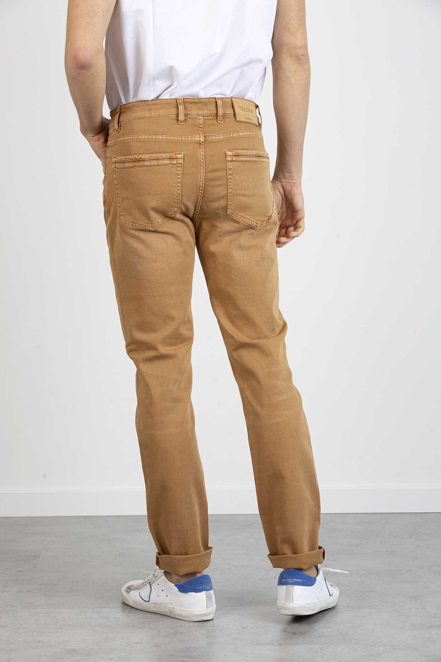 Pantalone 5 tasche in gabardina di cotone,